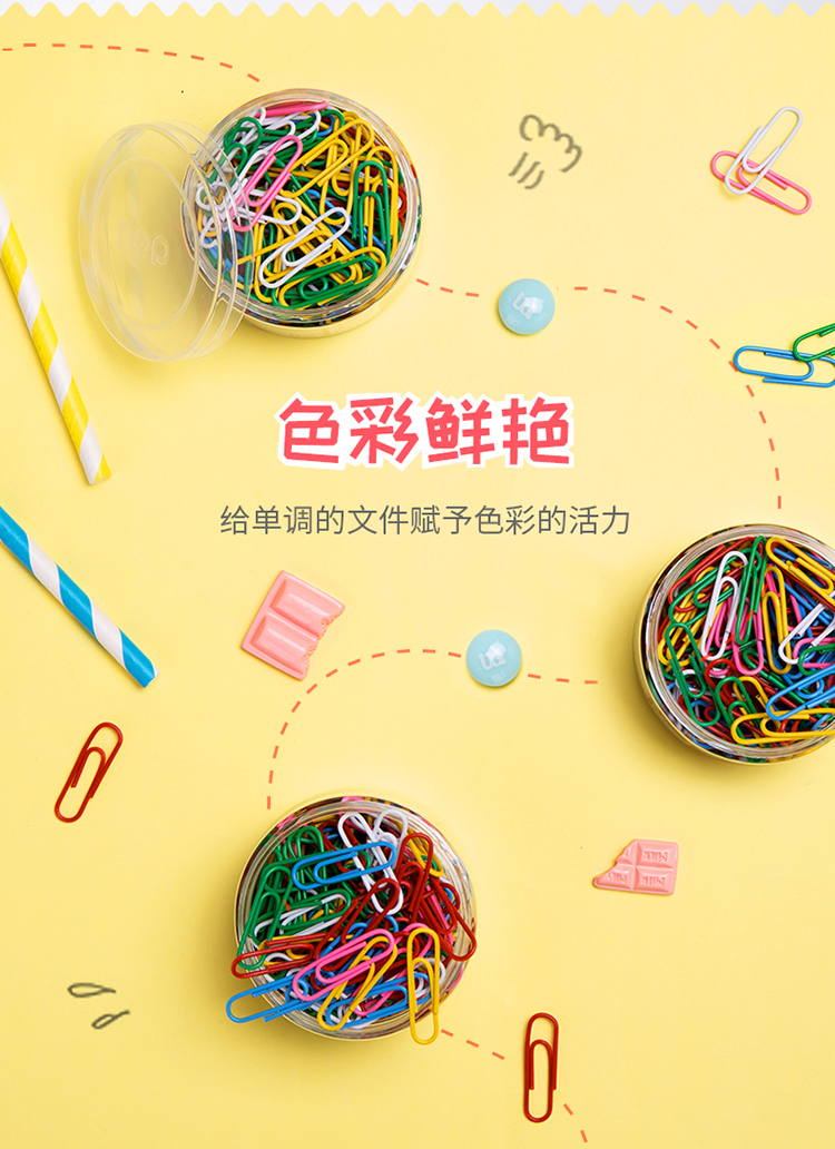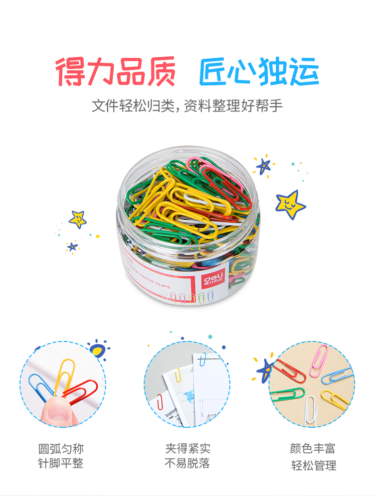 商品名称:得力(deli)0038金属曲别针160枚29mm彩色回形针