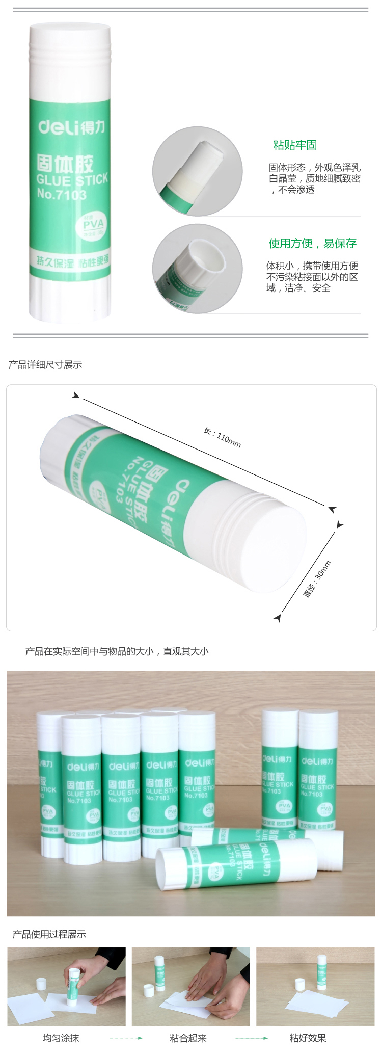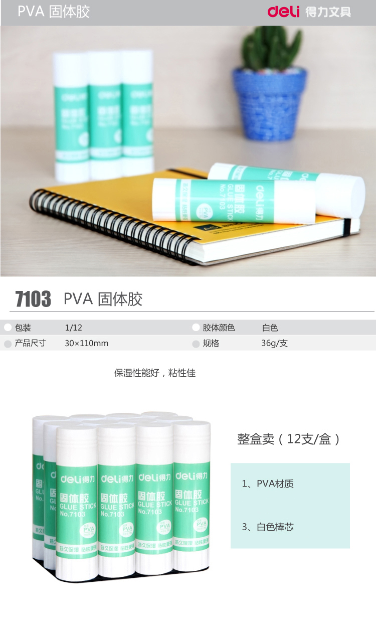 商品名称:得力(deli)7103 固体胶(36g) 12支/盒装