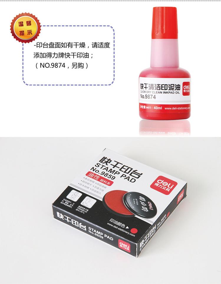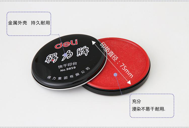 商品名称:得力(deli)φ89mm金属盖快干秒干印台印泥 红色9859