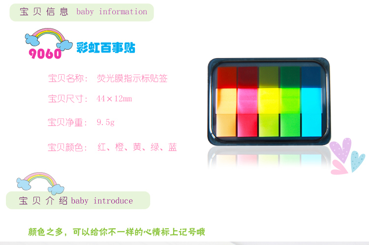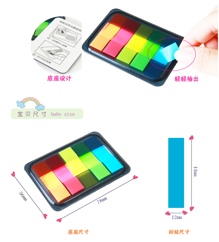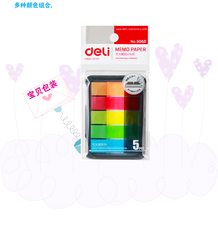 商品名称:得力9060 荧光膜抽取式指示标签5色44×12mm