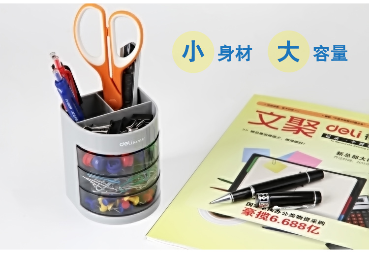 - 商品名称:得力9147三层多功能办公笔筒 颜色随机