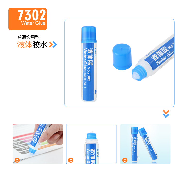 a、涂抹顺畅,粘力牢固,用于粘贴各种纸张。b、适合商务、办公、家庭使用。c、瓶身轻小、携带方便。