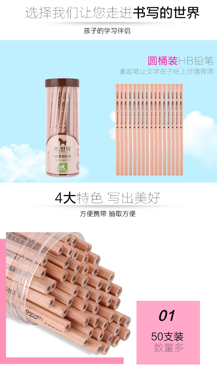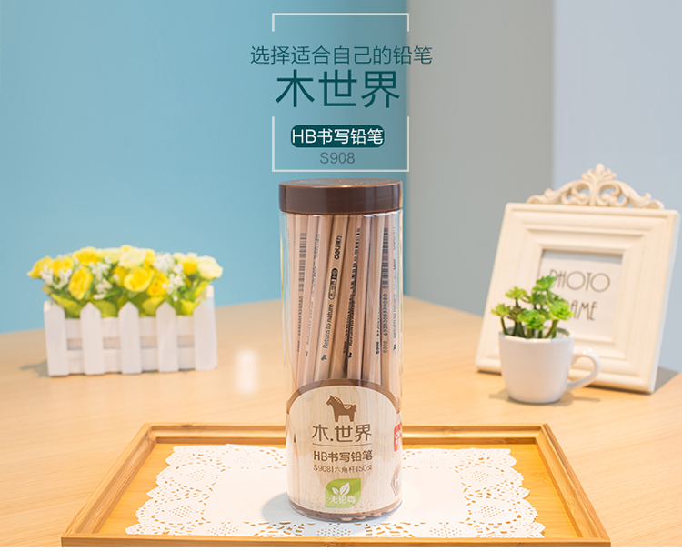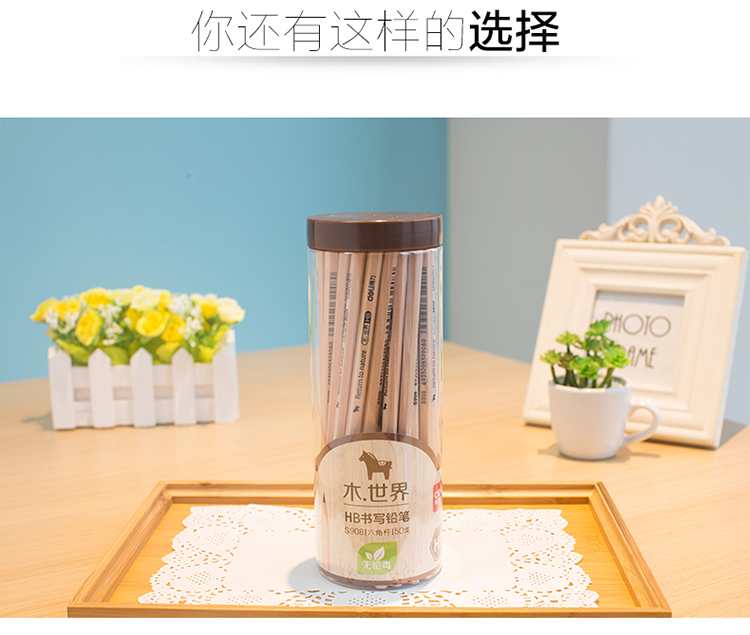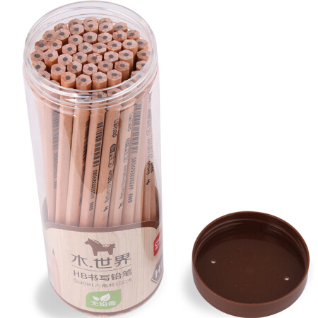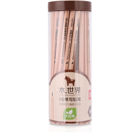 得力(deli)木世界系列六角笔杆原木HB铅笔素描绘图学生铅笔 50支/桶S908