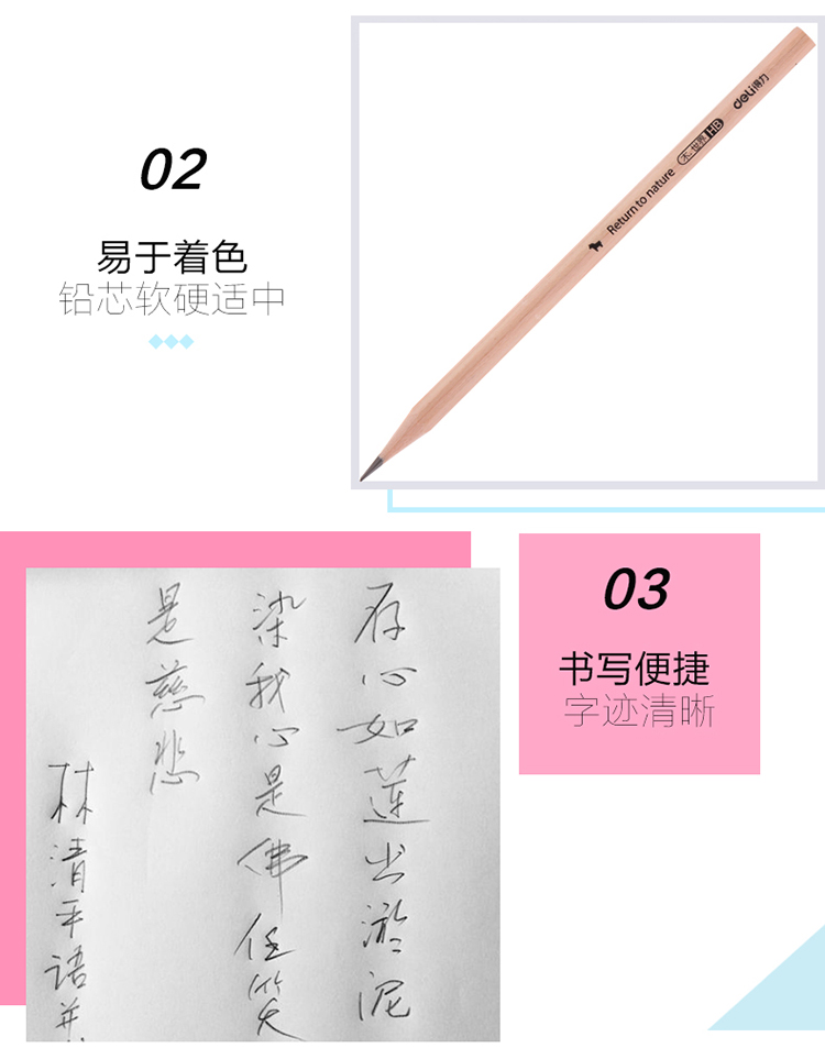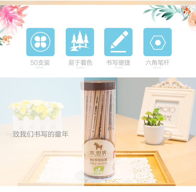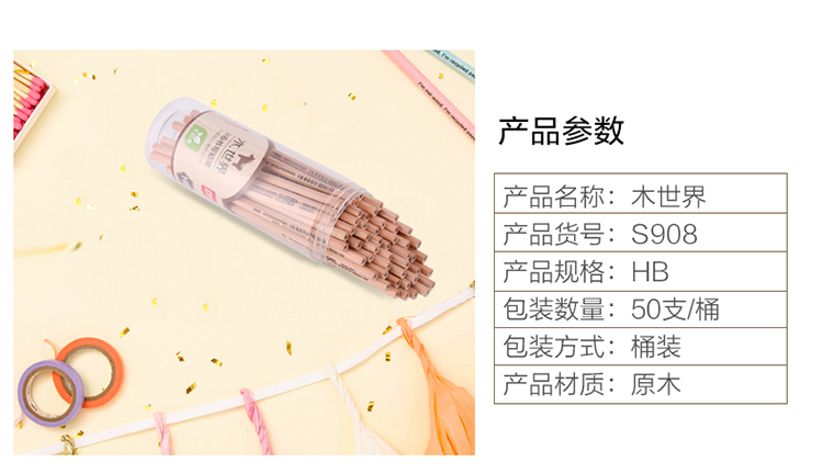 商品名称:得力(deli)木世界系列六角笔杆原木HB铅笔素描绘图学生铅笔 50支/桶S908