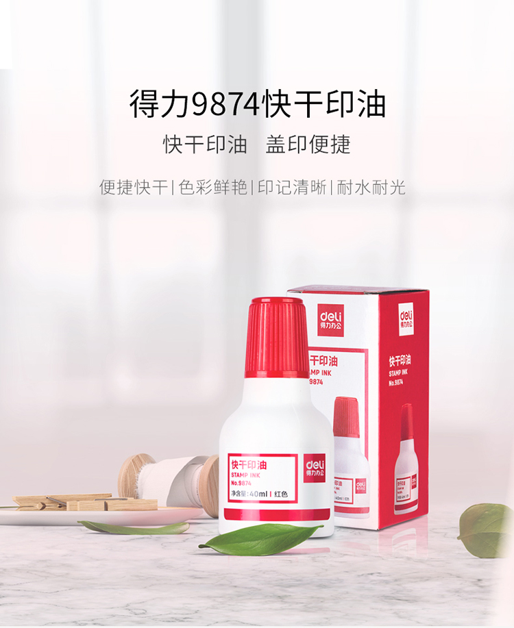 得力9874财务印章快干印油 40ml 红色