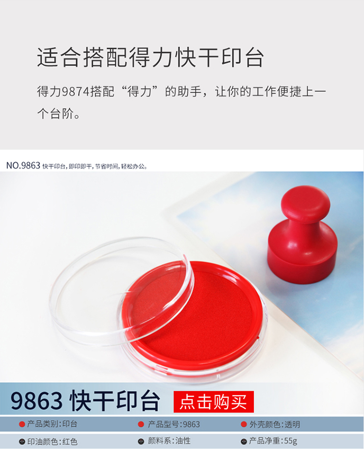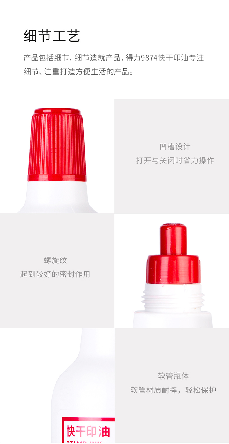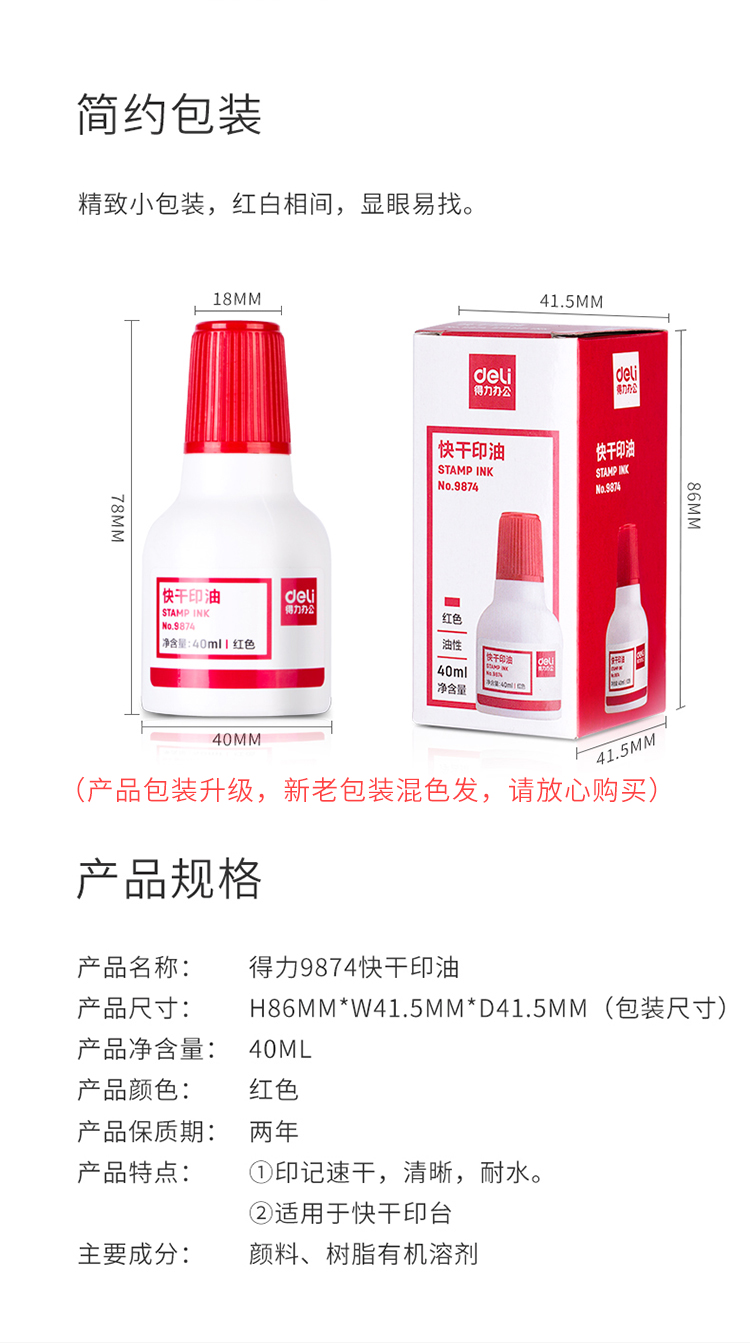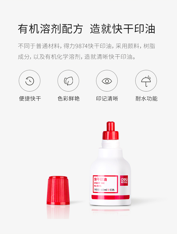 商品名称:得力9874财务印章快干印油 40ml 红色