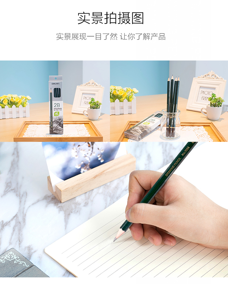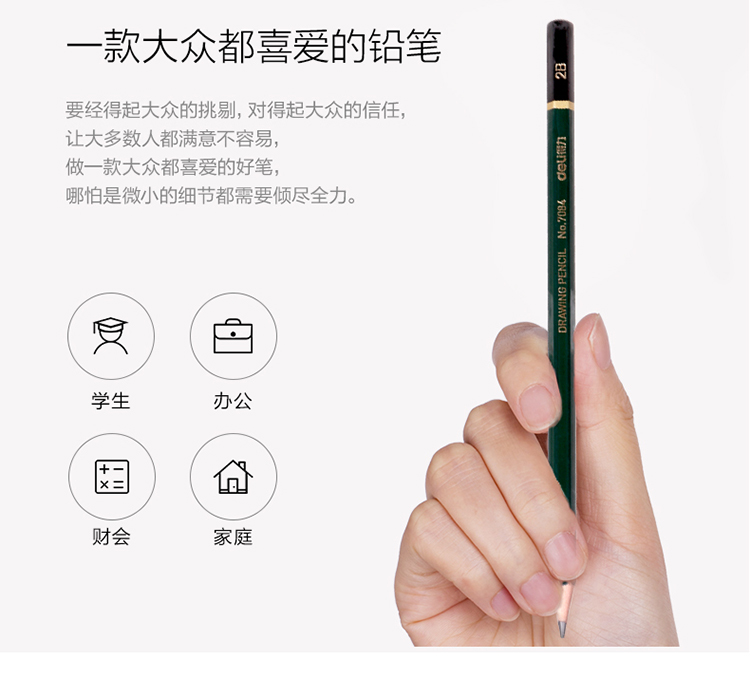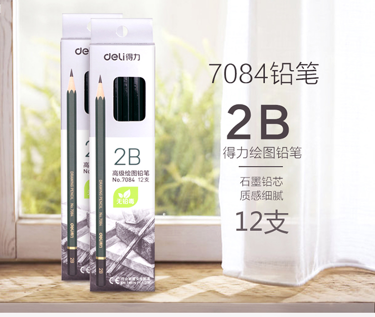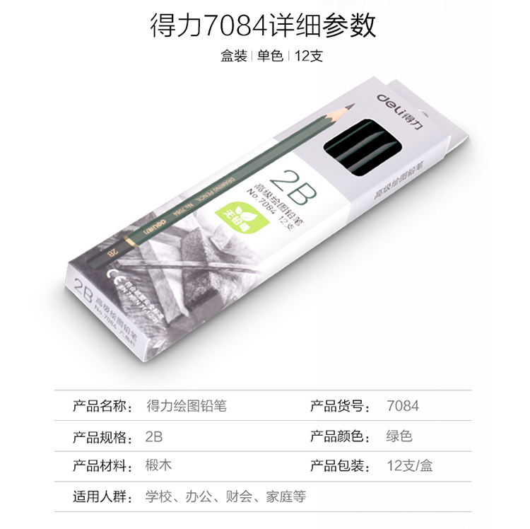 商品名称:得力7084安全考试专用填涂答题卡2B木质铅笔学生铅笔 12支/盒
