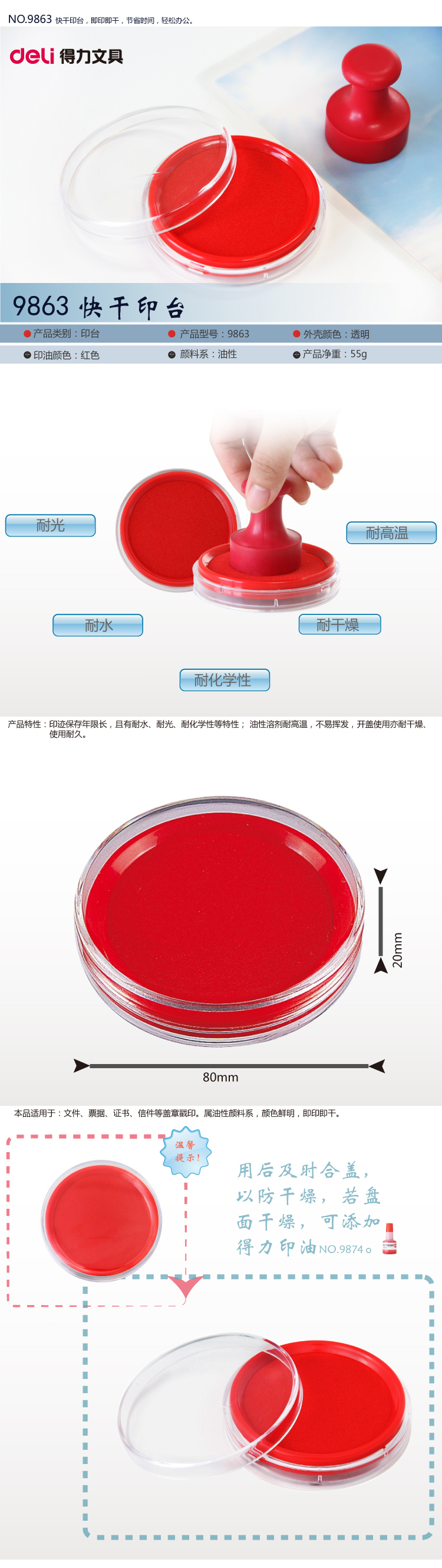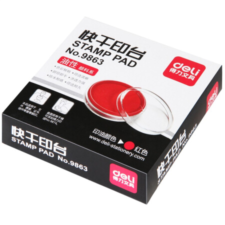 商品名称:得力9863圆形快干印台印泥80mm 红色(单位 个)