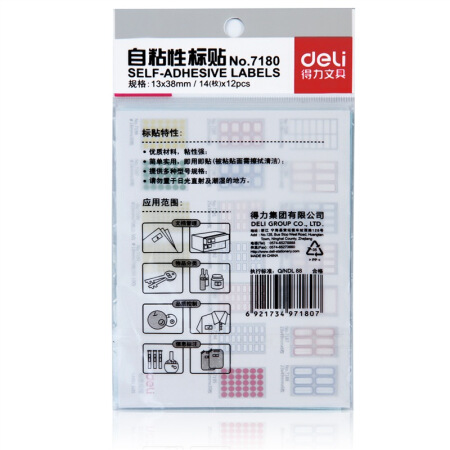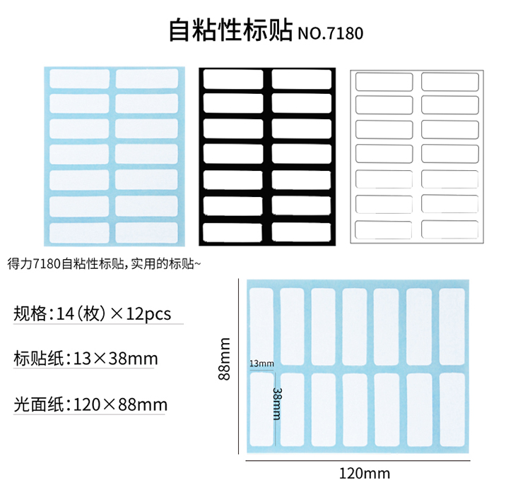 商品名称:得力(deli)168枚13×38mm不干胶标签贴纸自粘性标贴 14枚/张7180