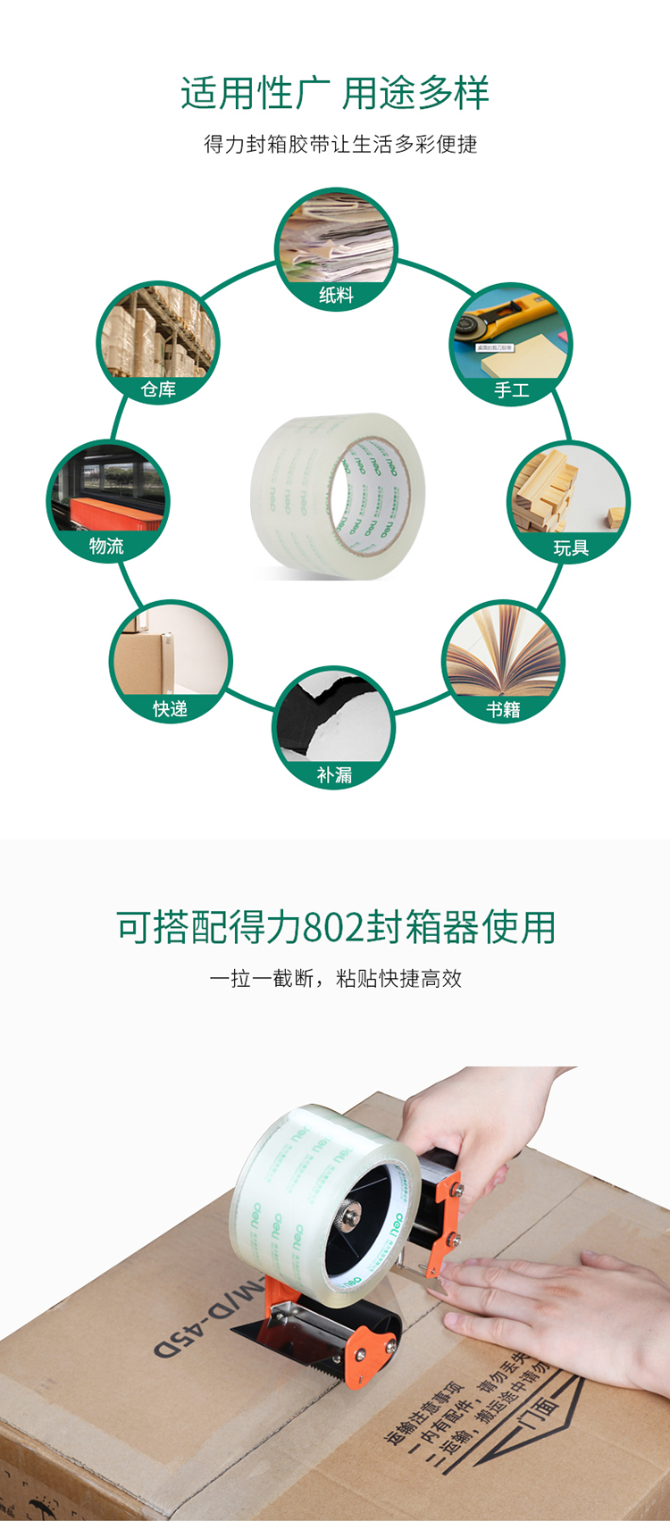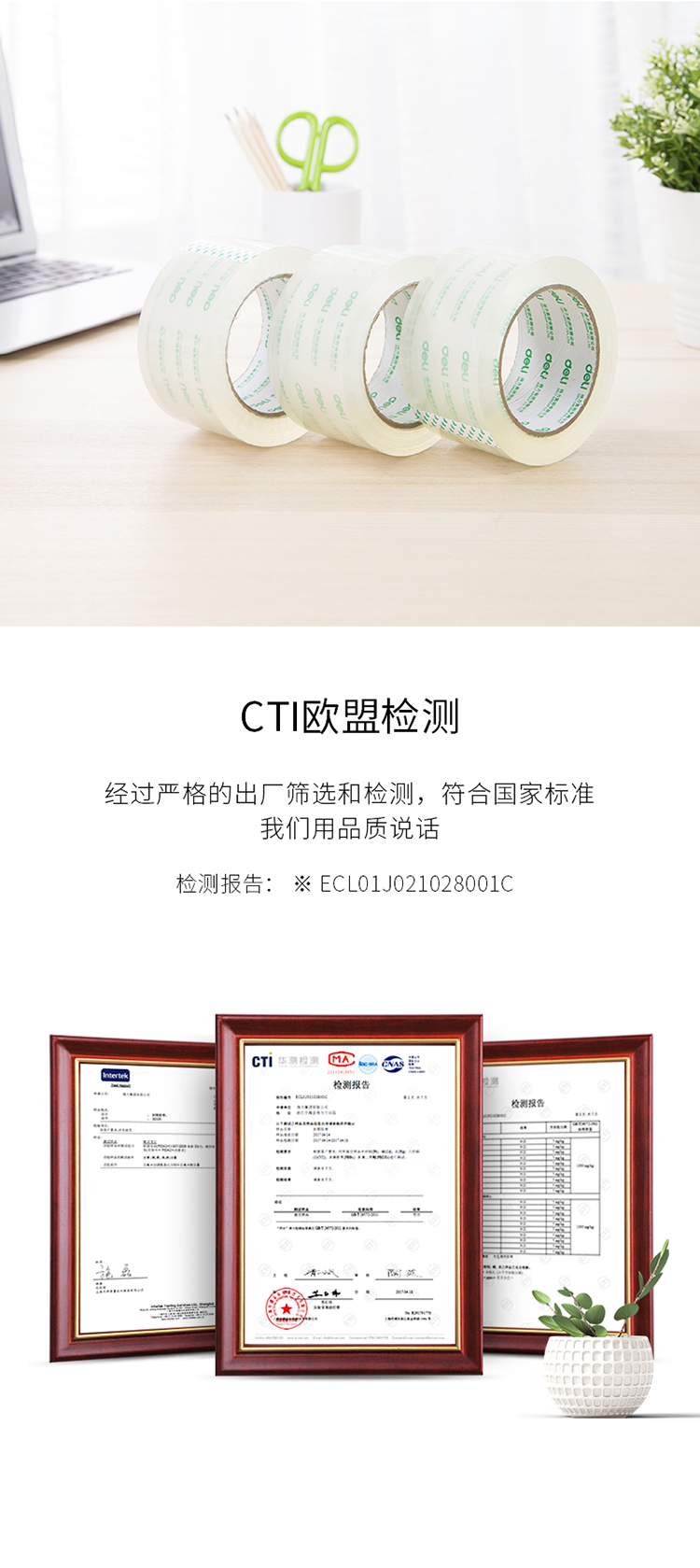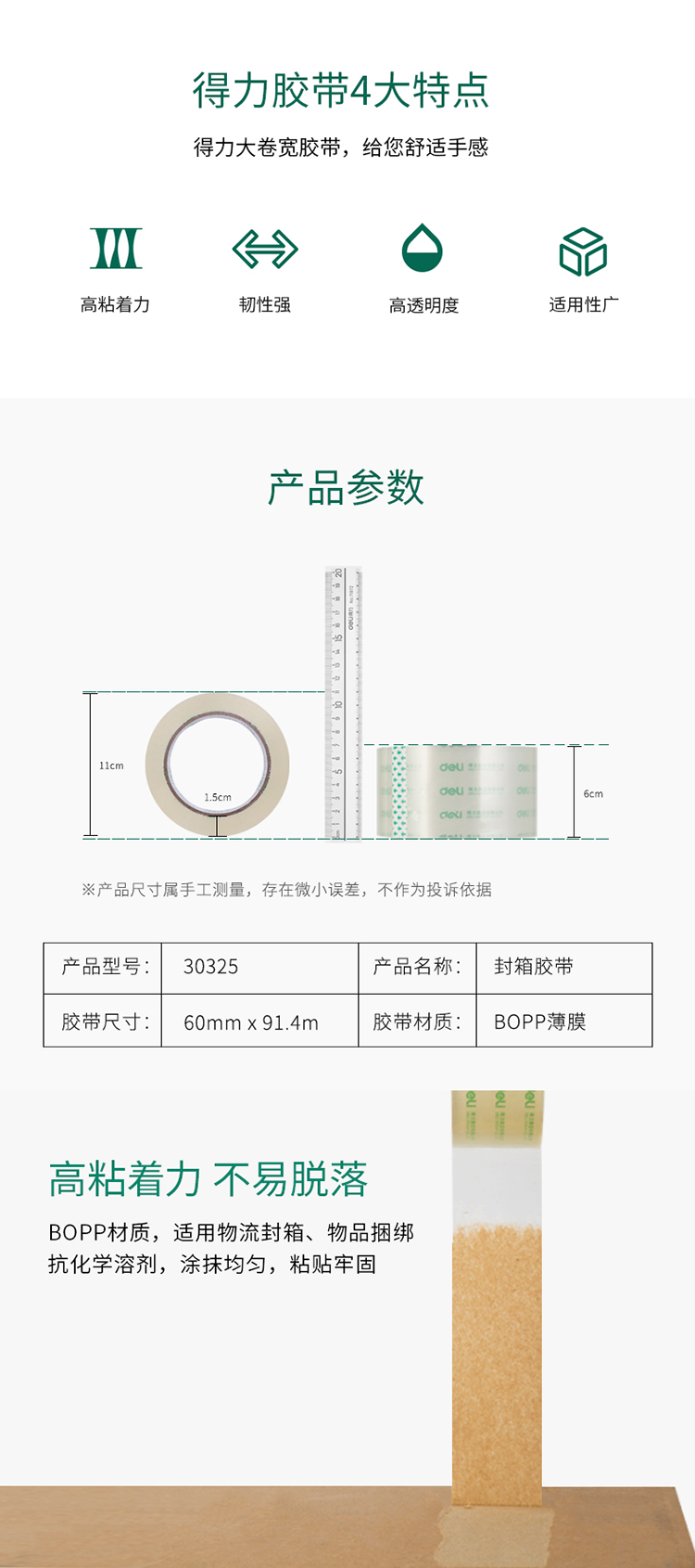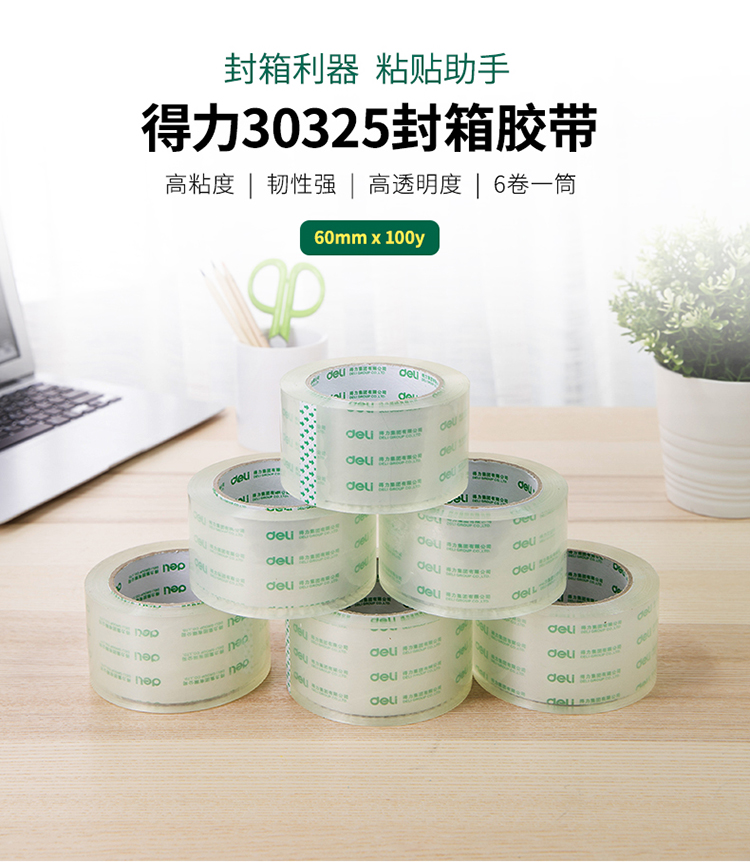 商品名称:得力(deli)30325 高透明度封箱胶带60mm*100y(91.4米) 6卷/筒