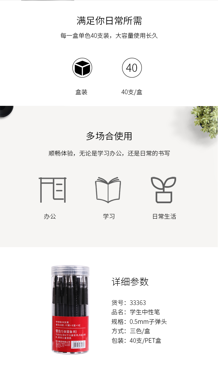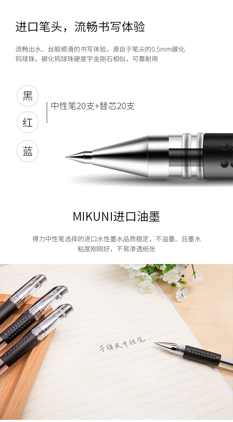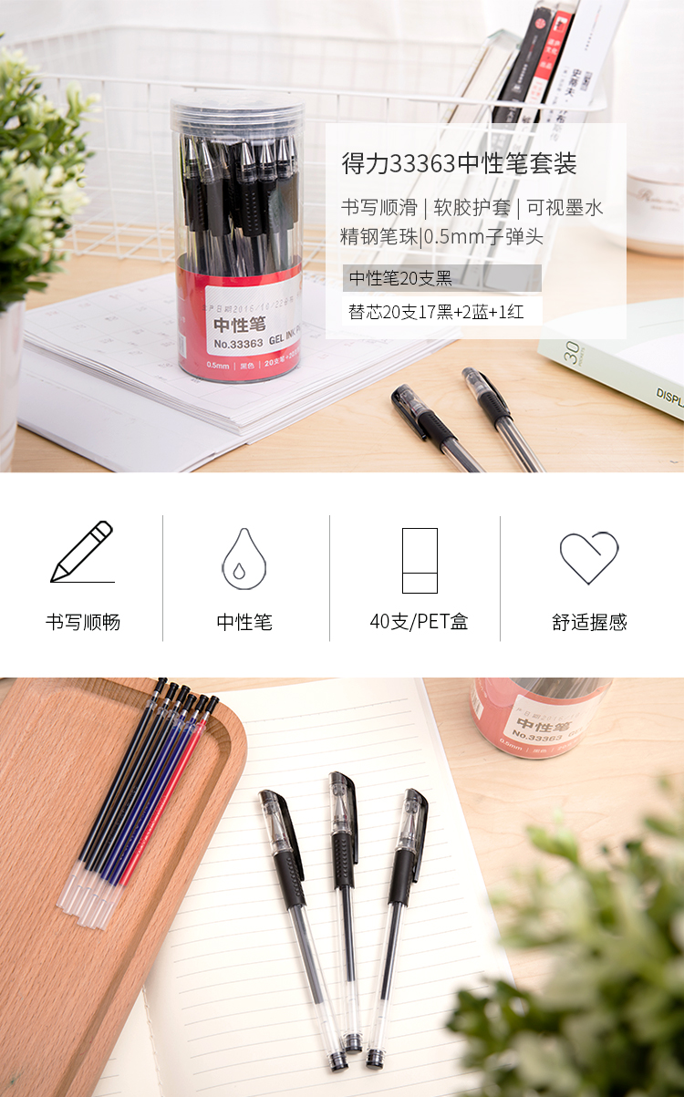商品名称:得力(deli)0.5mm中性笔水笔签字笔套装(20支笔黑+20支替芯混)33363