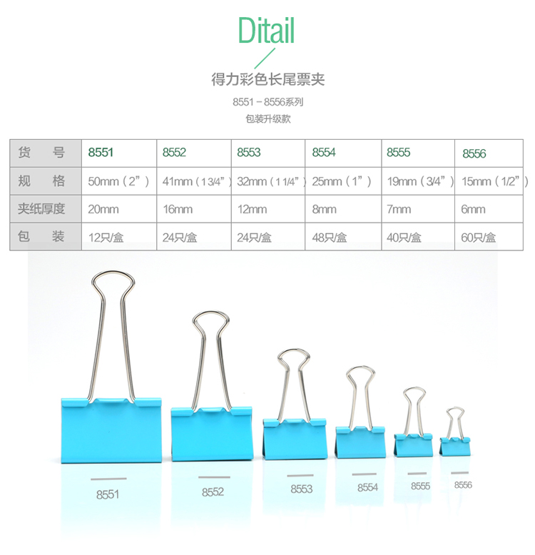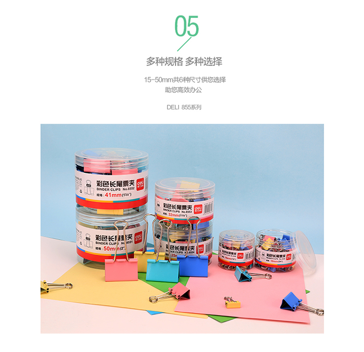 商品名称:得力8553-3#彩色长尾票夹32mm中号 24只/筒