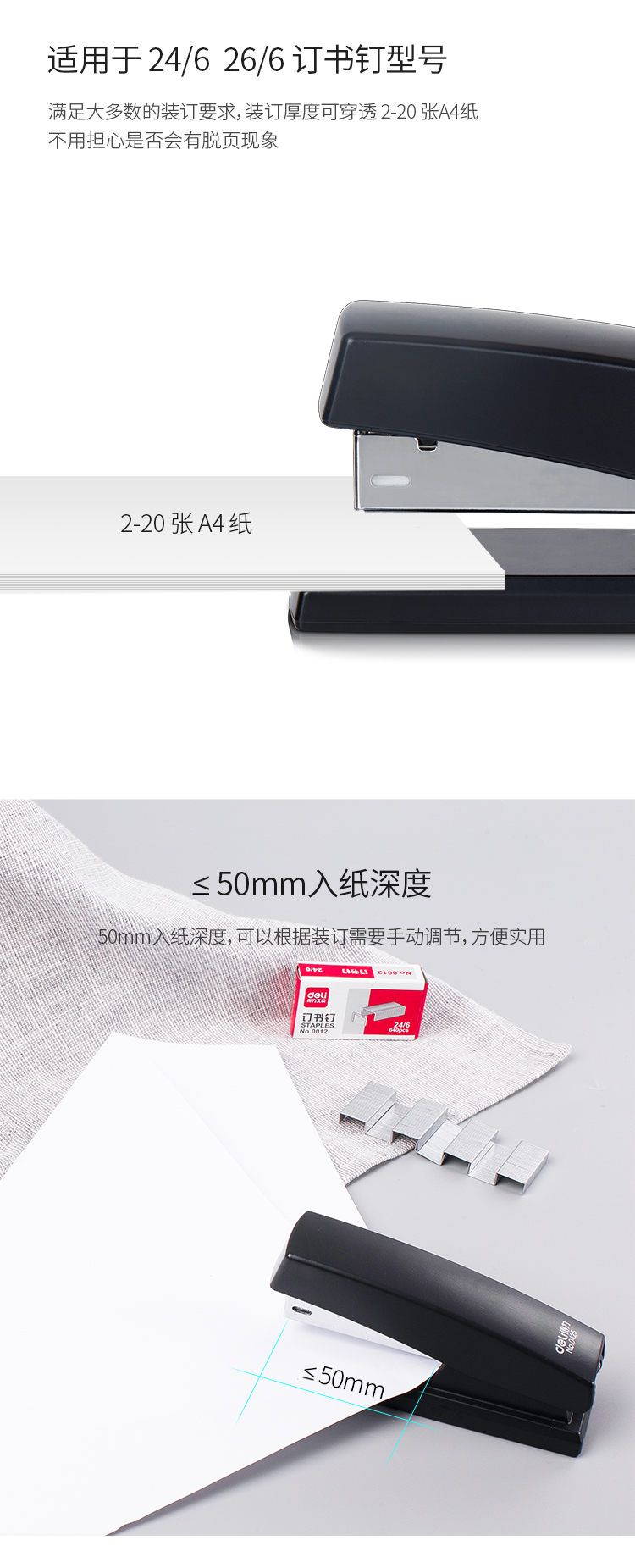 商品名称:得力(deli)12#办公订书机3件套(订书器+订书针+起钉器) 黑色0354