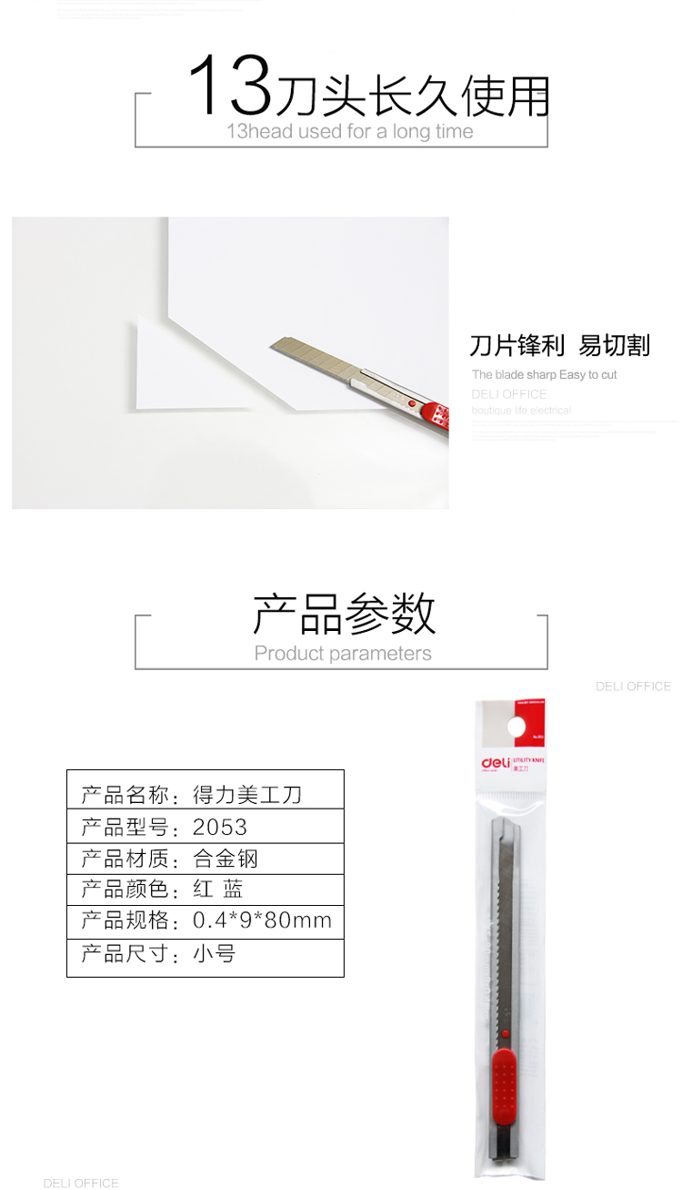 商品名称:得力(deli)2053 小号金属壳美工刀