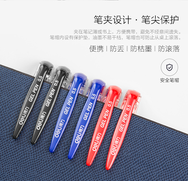得力(deli)6600黑色0.5mm经典办公中性笔水笔 子弹头签字笔 12支/盒