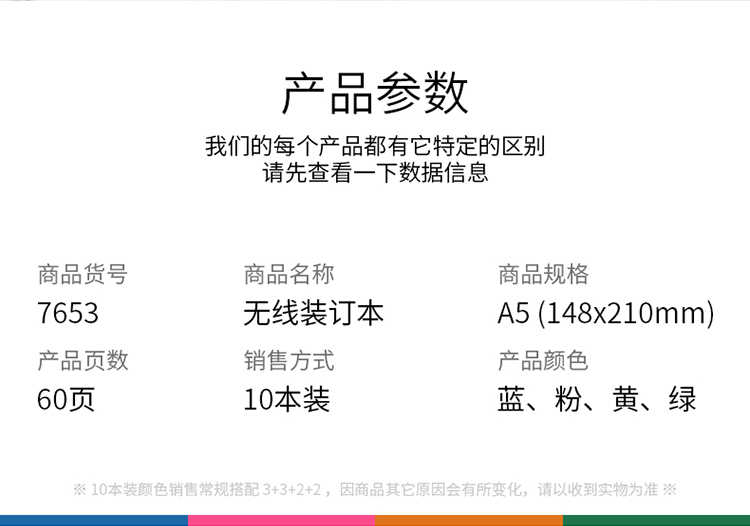 商品名称:得力(deli)7653 A5/60页无线装订笔记本子工作笔记本 文具软抄本记事本