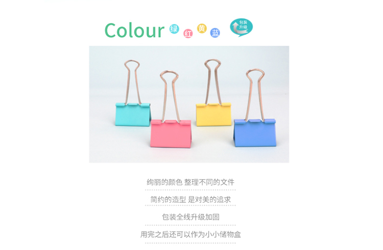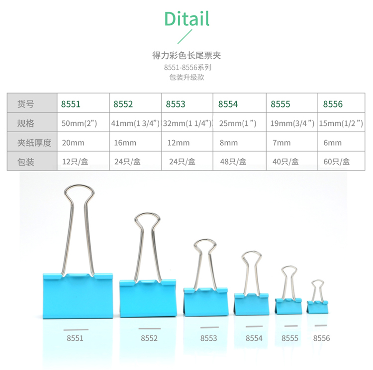 商品名称:得力8556-6#彩色长尾票夹 60只/筒15mm 小号