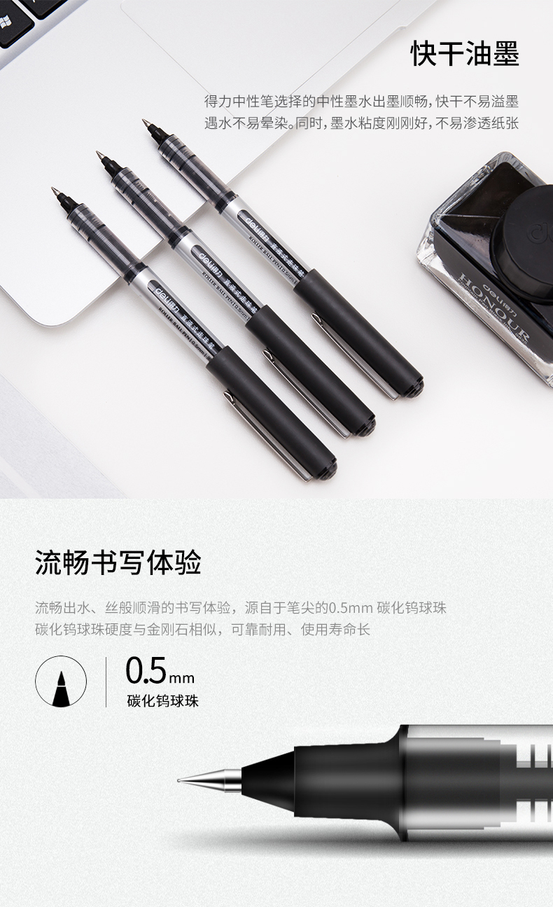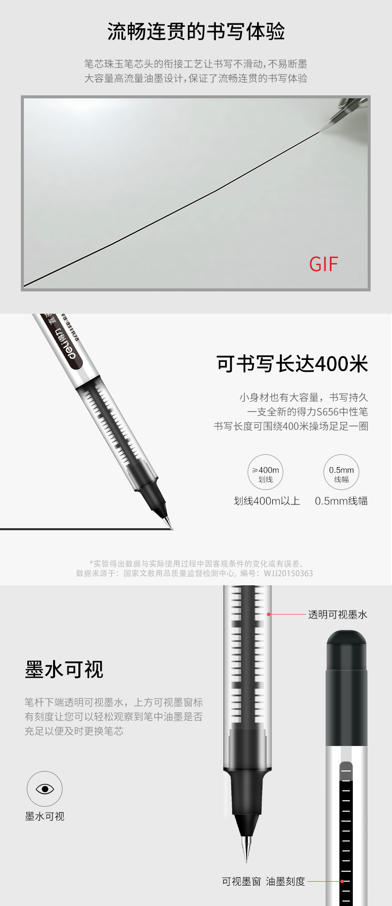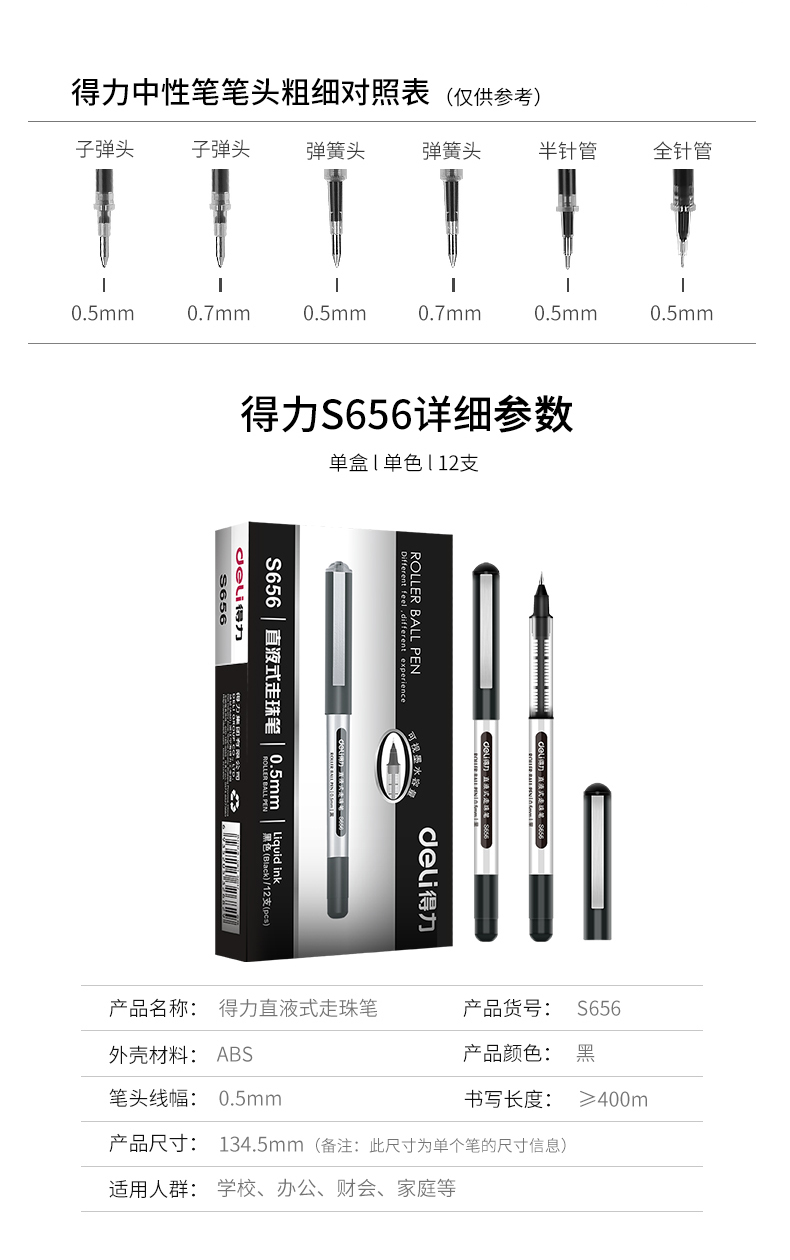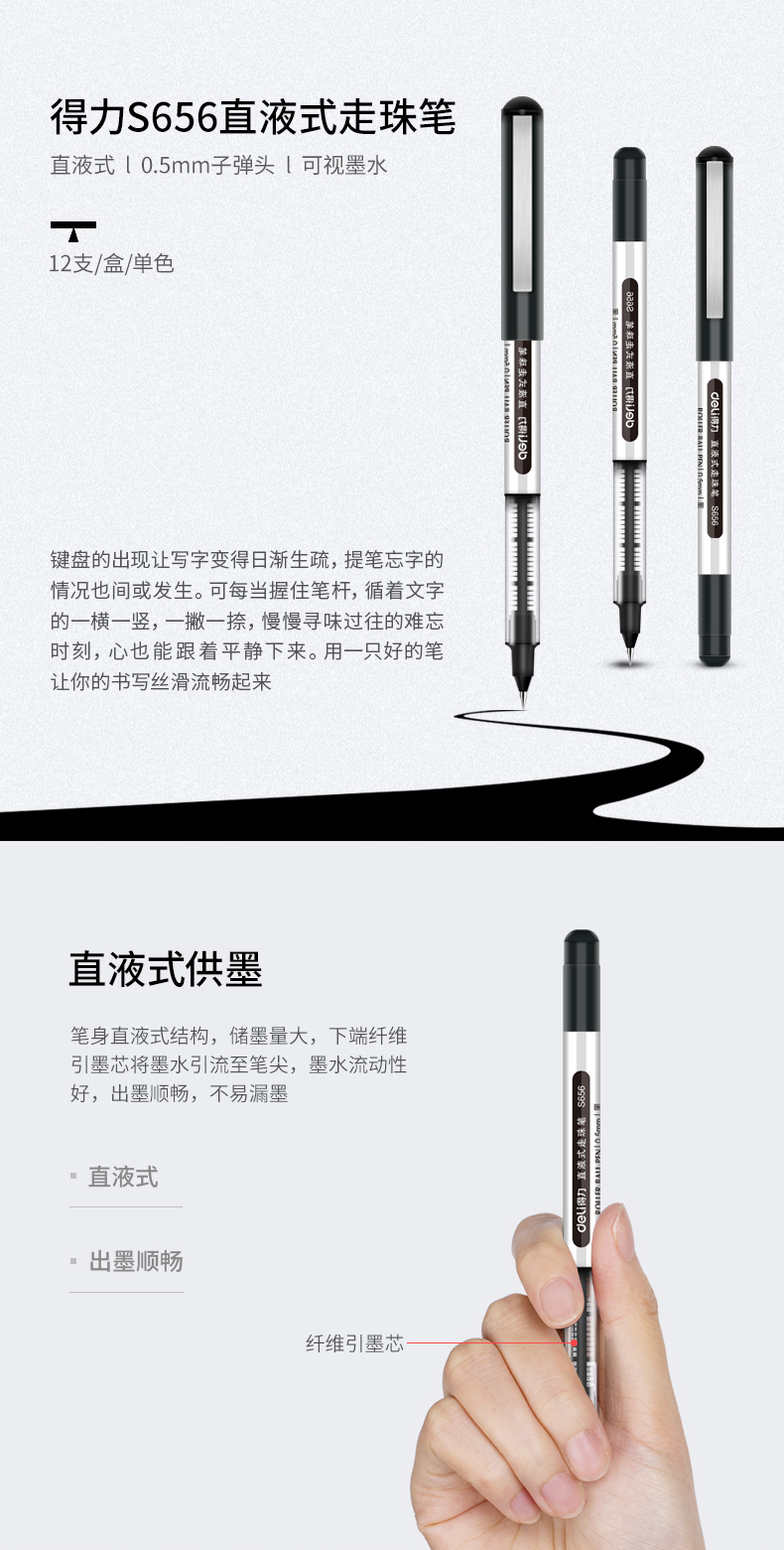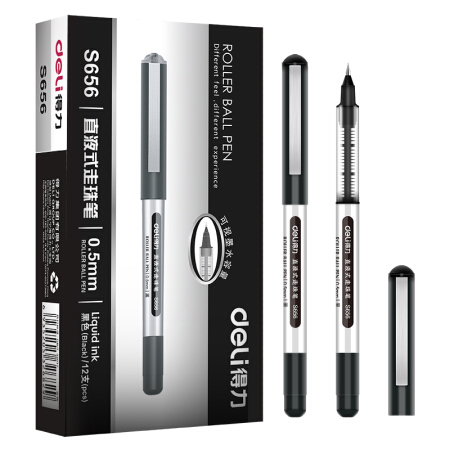 商品名称:得力S656直液式走珠签字笔0.5mm 黑色 12支/盒