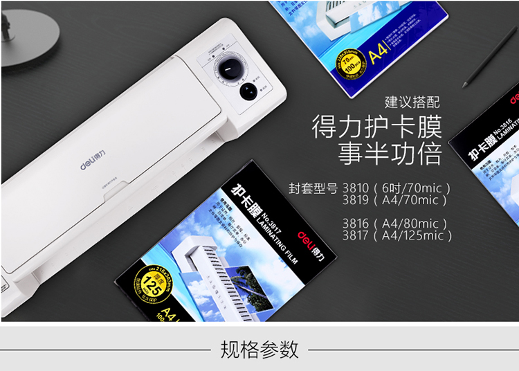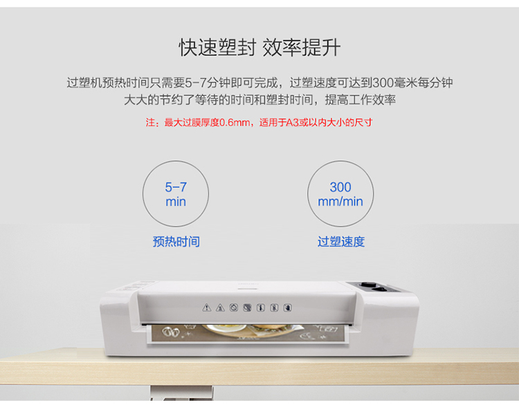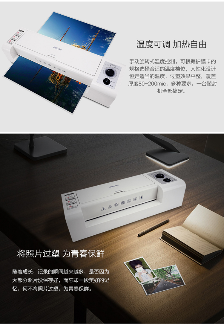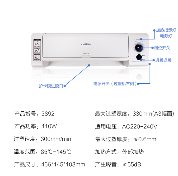商品名称:得力3892 适用A3静音设计正反转功能塑封机/过塑机 冷裱/热裱 灰色