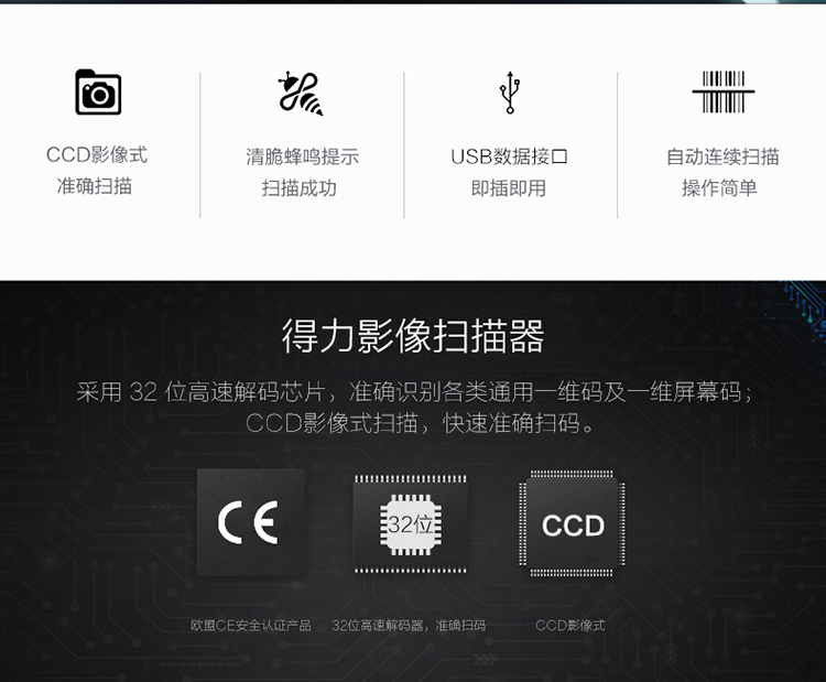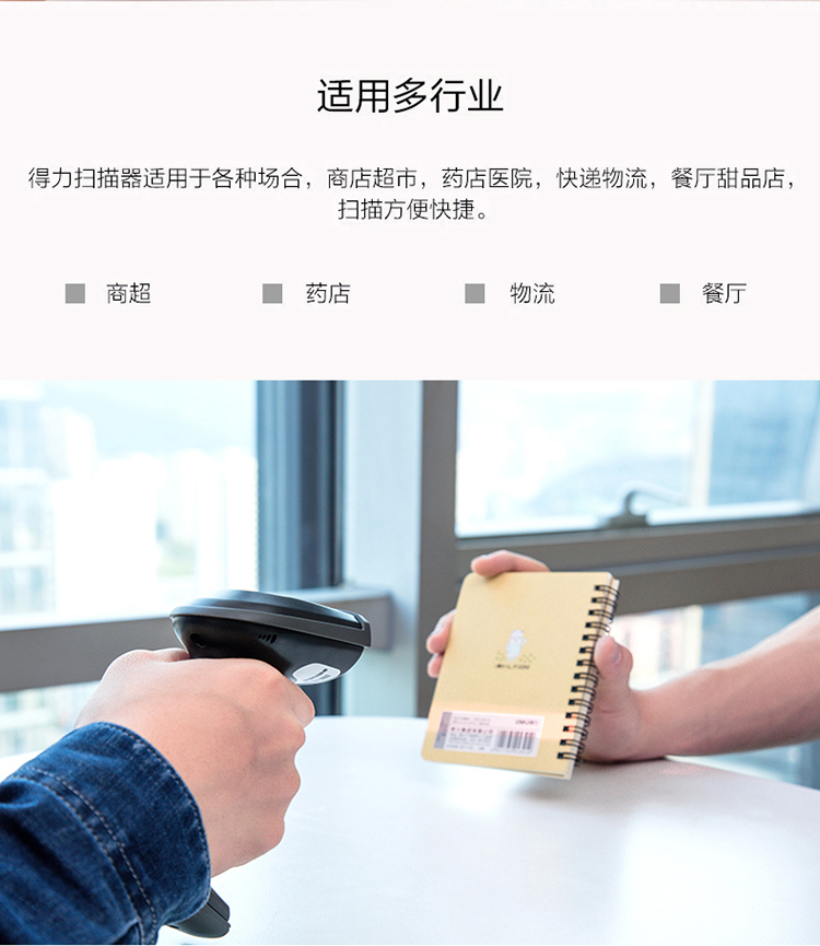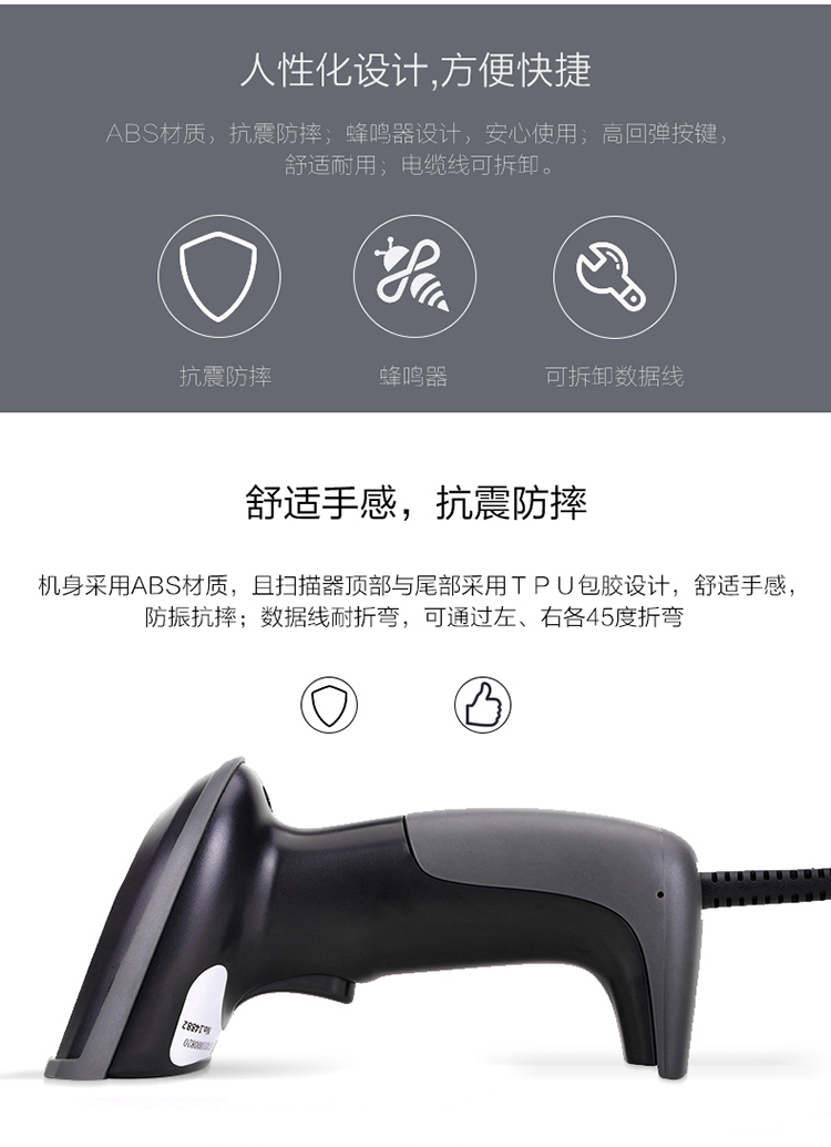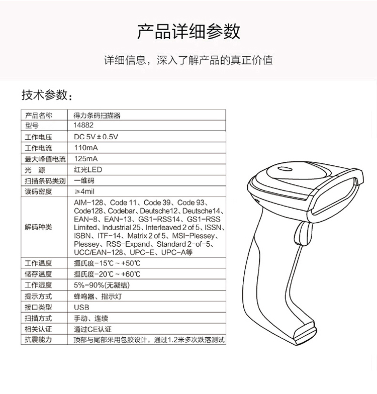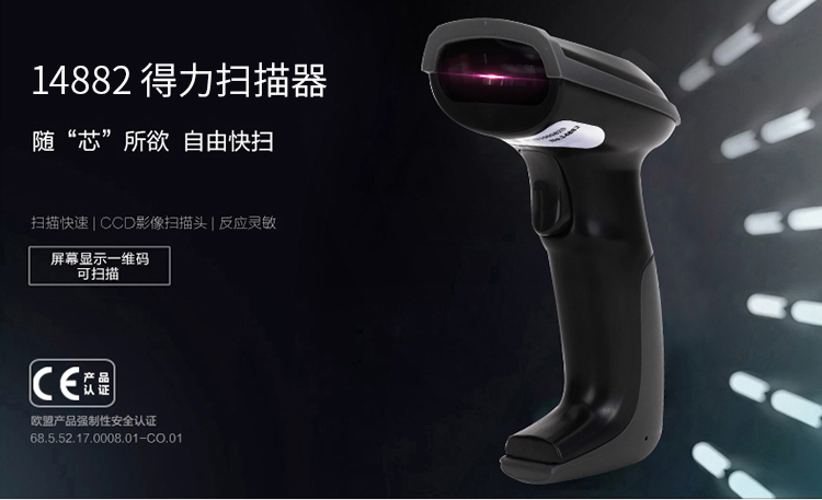 商品名称:得力(deli)14882 手机支付有线扫码枪一维码扫描器条码枪 即插即用(黑色)