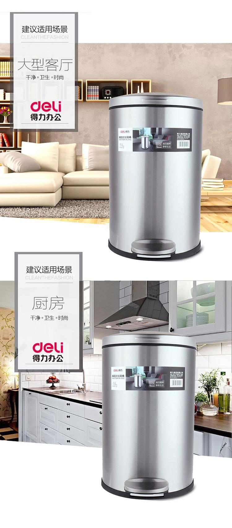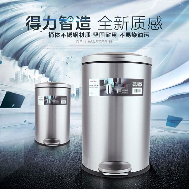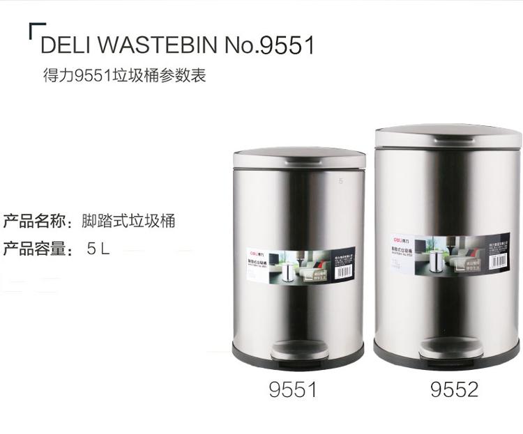 商品名称:得力(deli)9551 时尚脚踏不锈钢垃圾桶 液压缓降 低噪防臭 5L