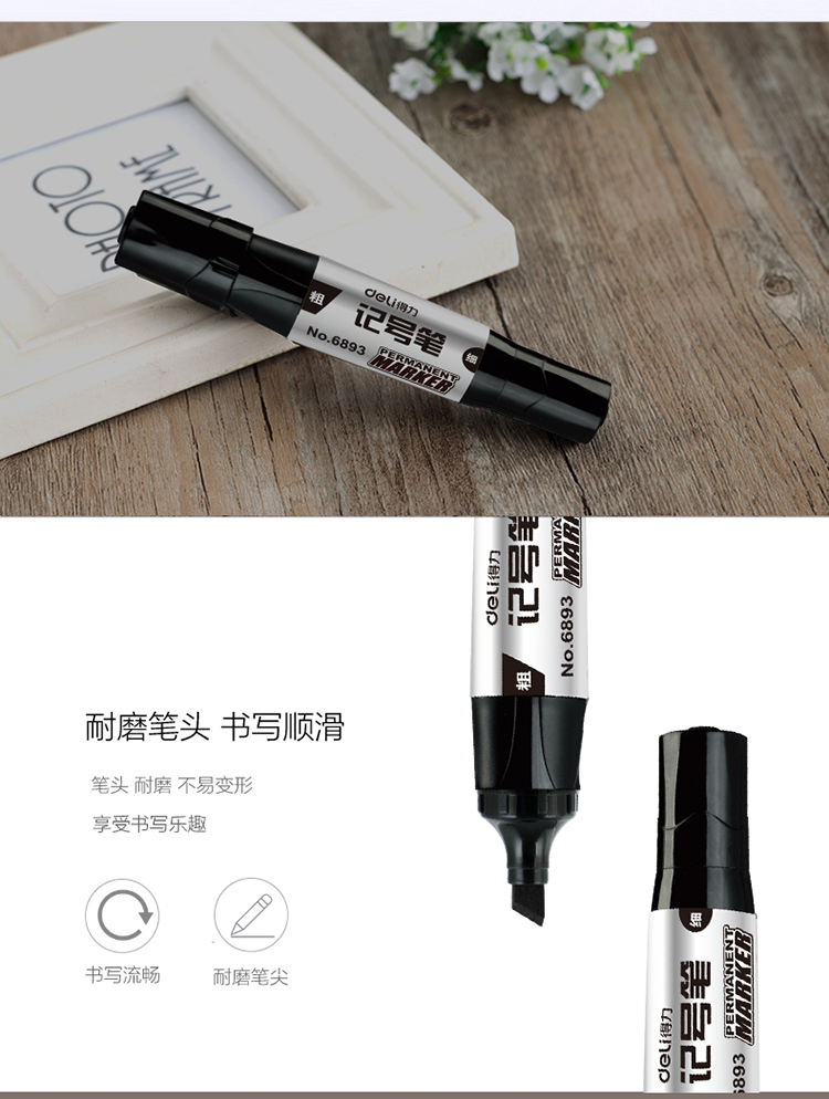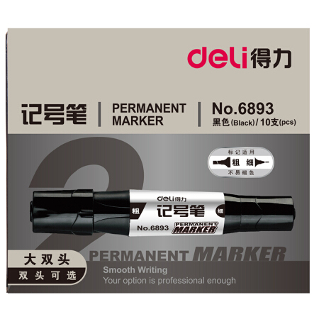 商品名称:得力(deli6893 物流专用双头油性记号笔大头笔(黑色) 10支/盒