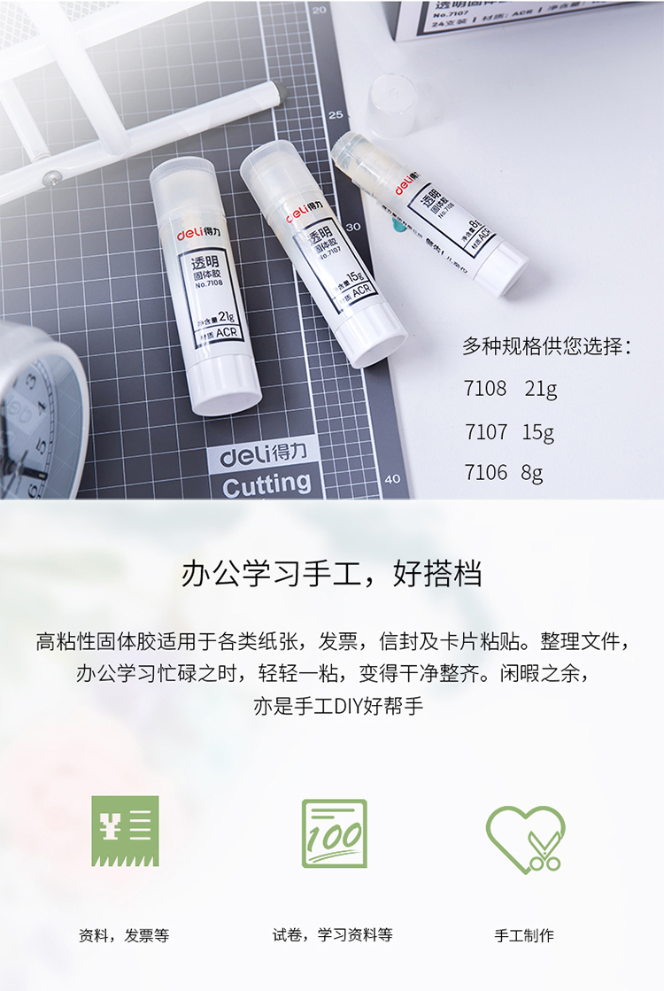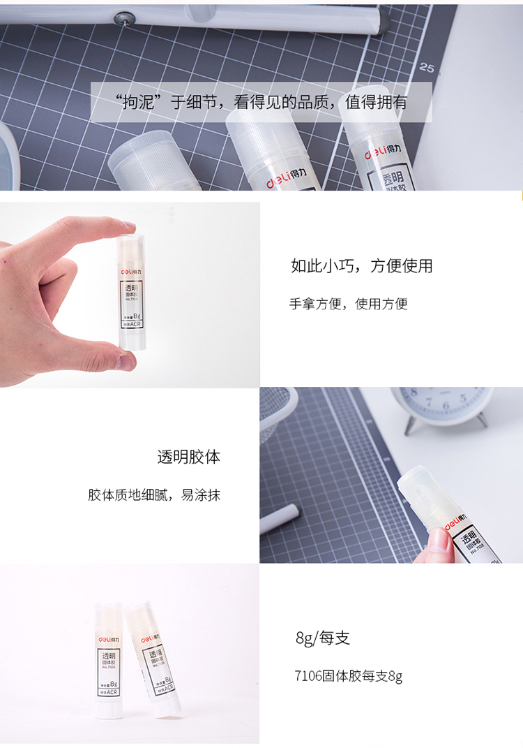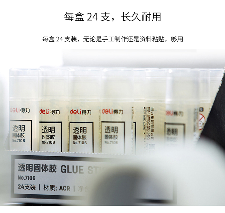 商品名称:得力7106高粘度手工固体胶8g 24支/盒