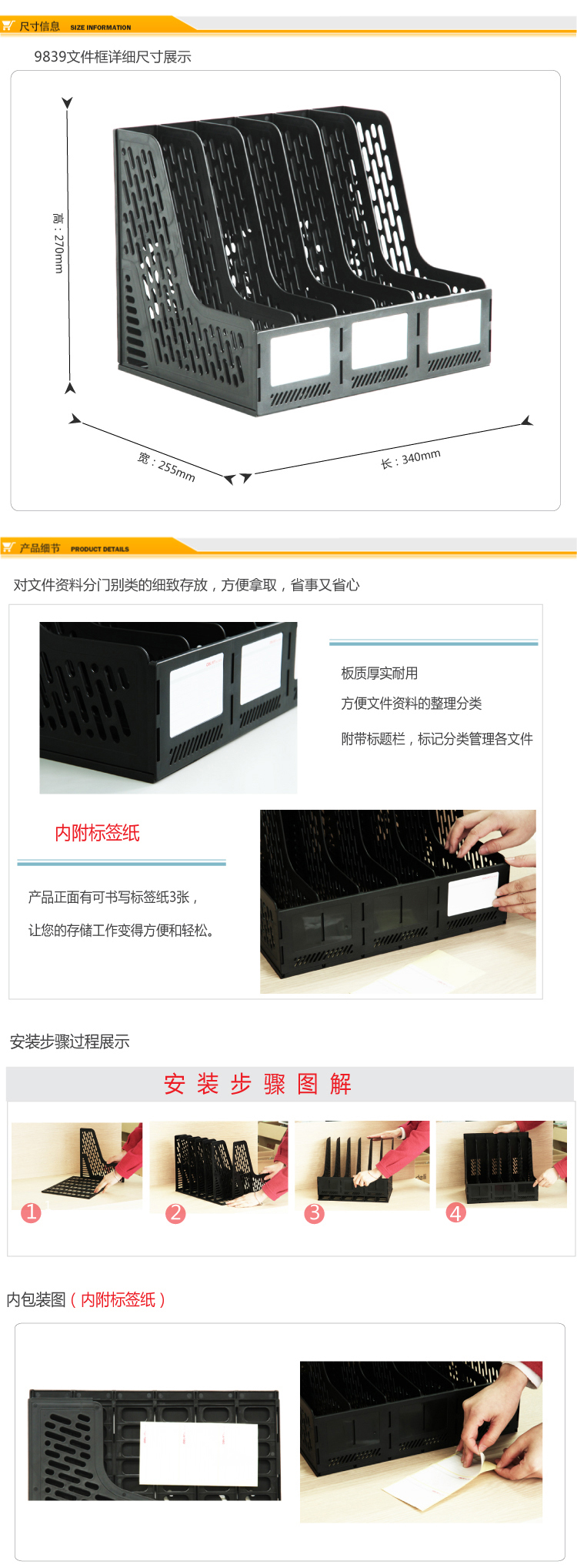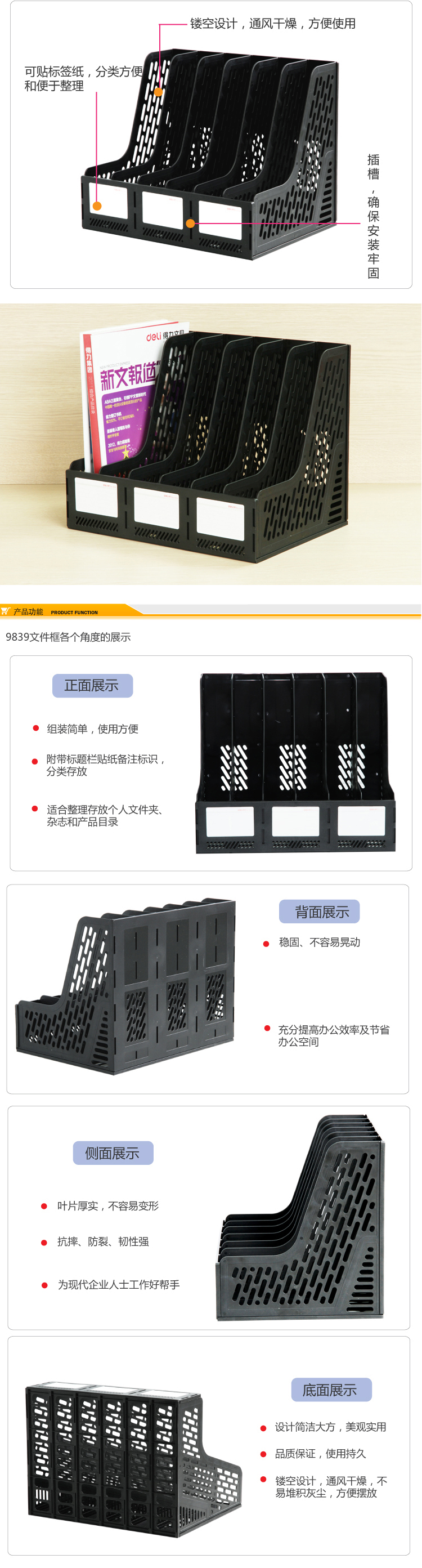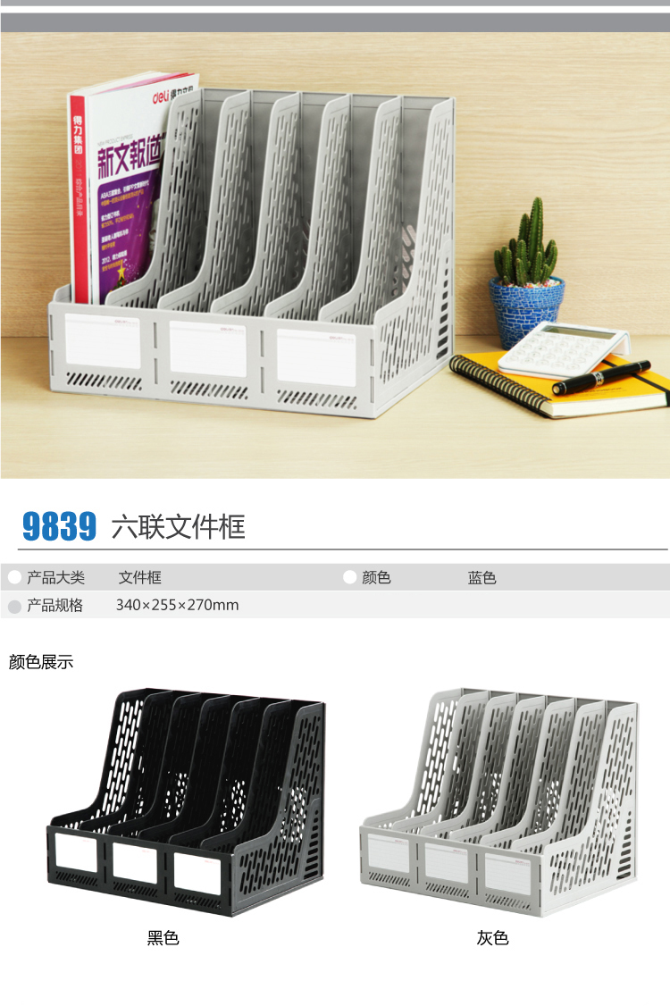 商品名称:得力(deli) 9839 稳固耐用六联文件框/文件筐 黑色