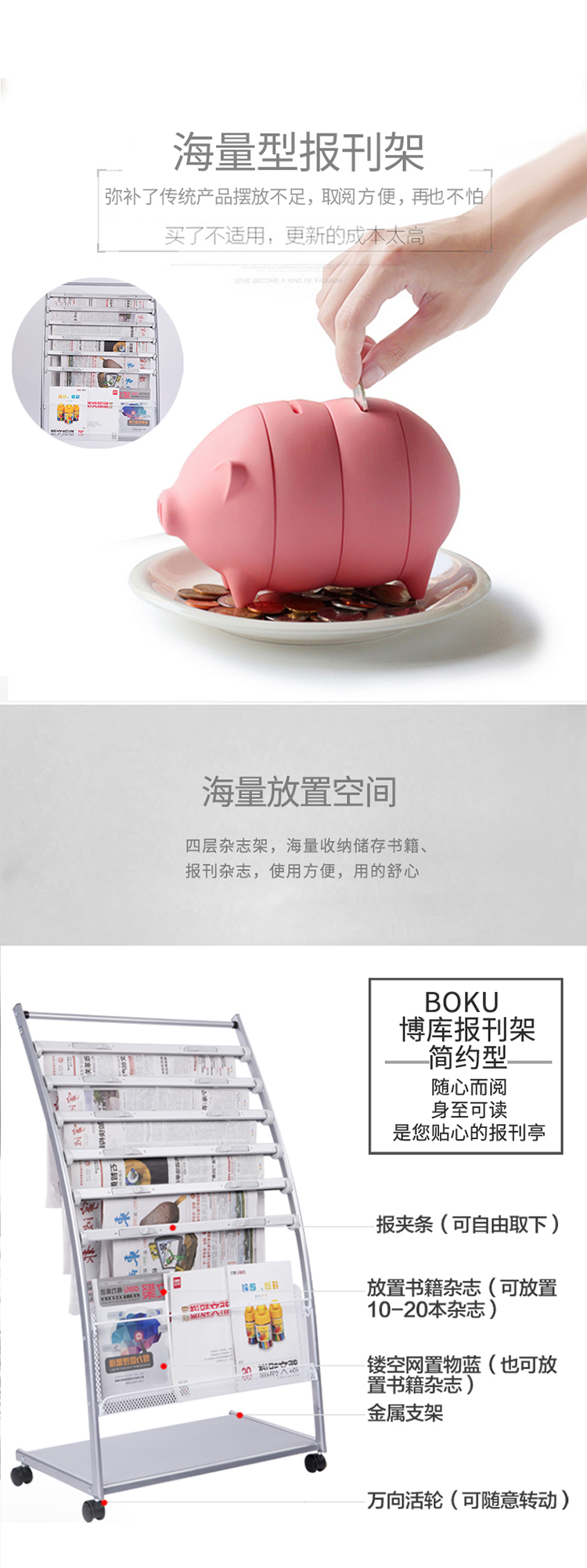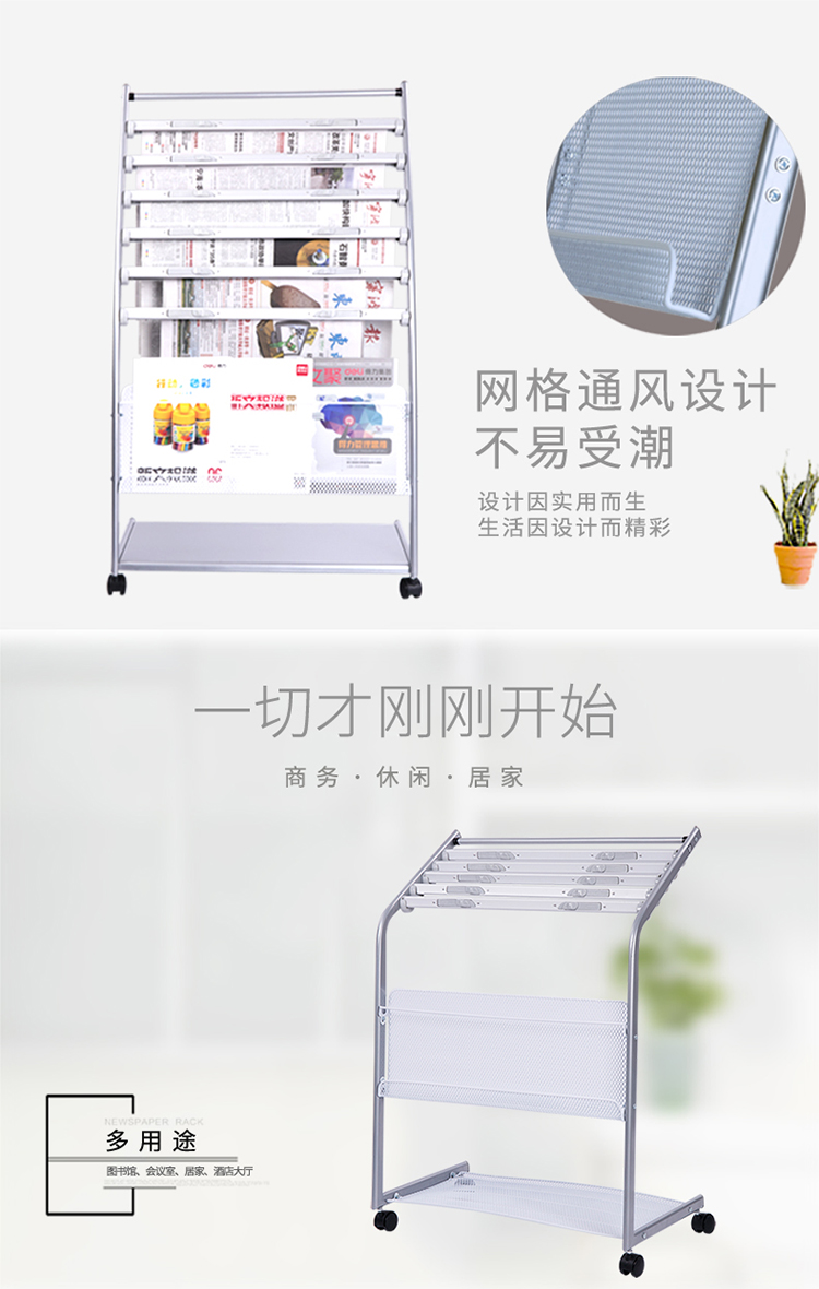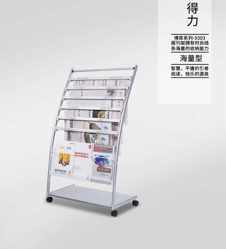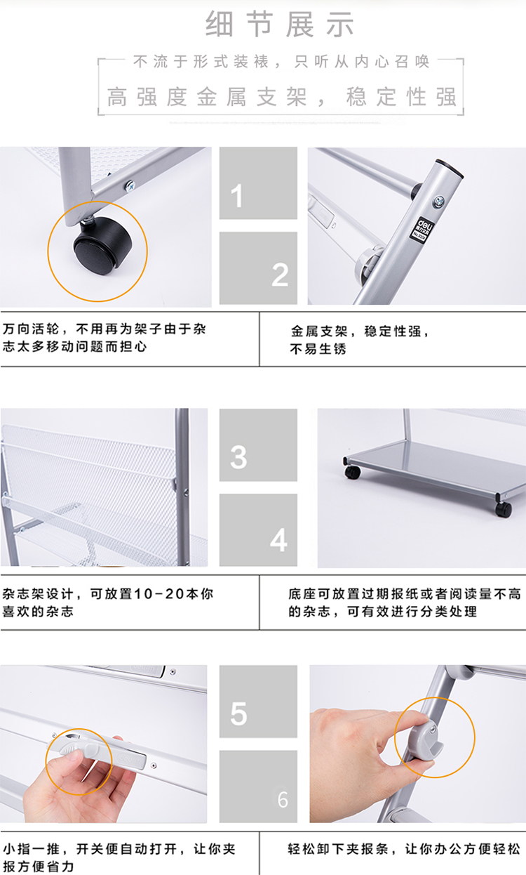 商品名称:得力(deli) 9303 七层铝合金夹条报纸架报刊架 杂志展示架635*360*1080mm
