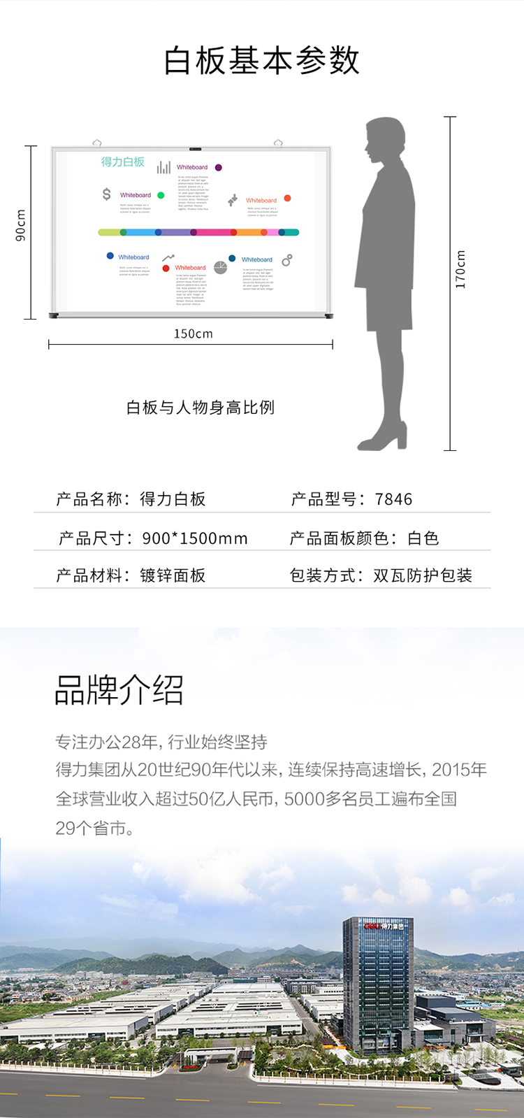 商品名称:得力(deli)7846 90*150cm高级磁性办公、教学、会议白板(附赠白板擦 白板笔 磁钉)