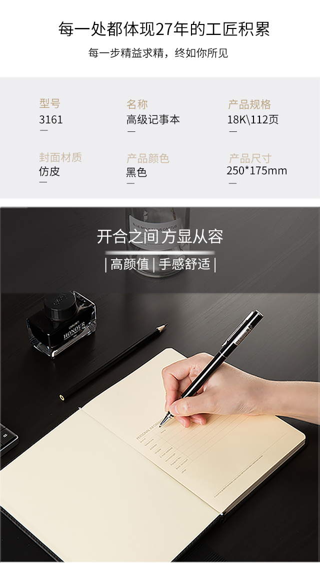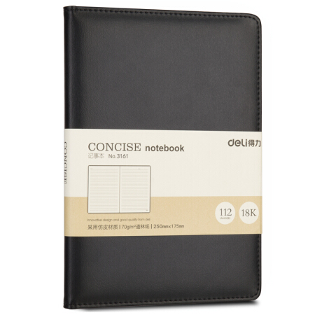 商品名称:得力(deli)112页商务皮面本 办公记事本笔记本子 (18K16K随机发货)黑色3161