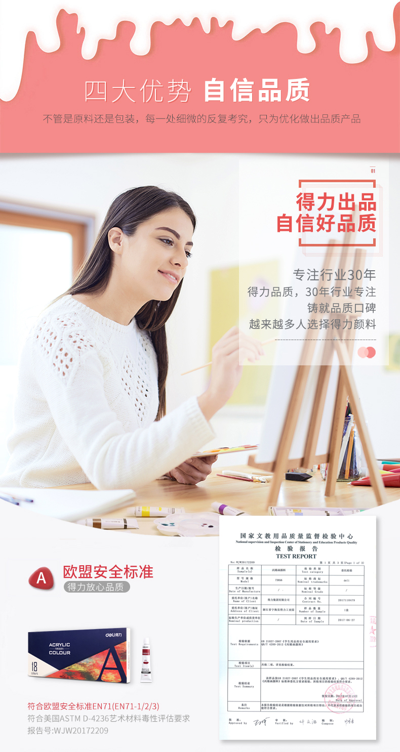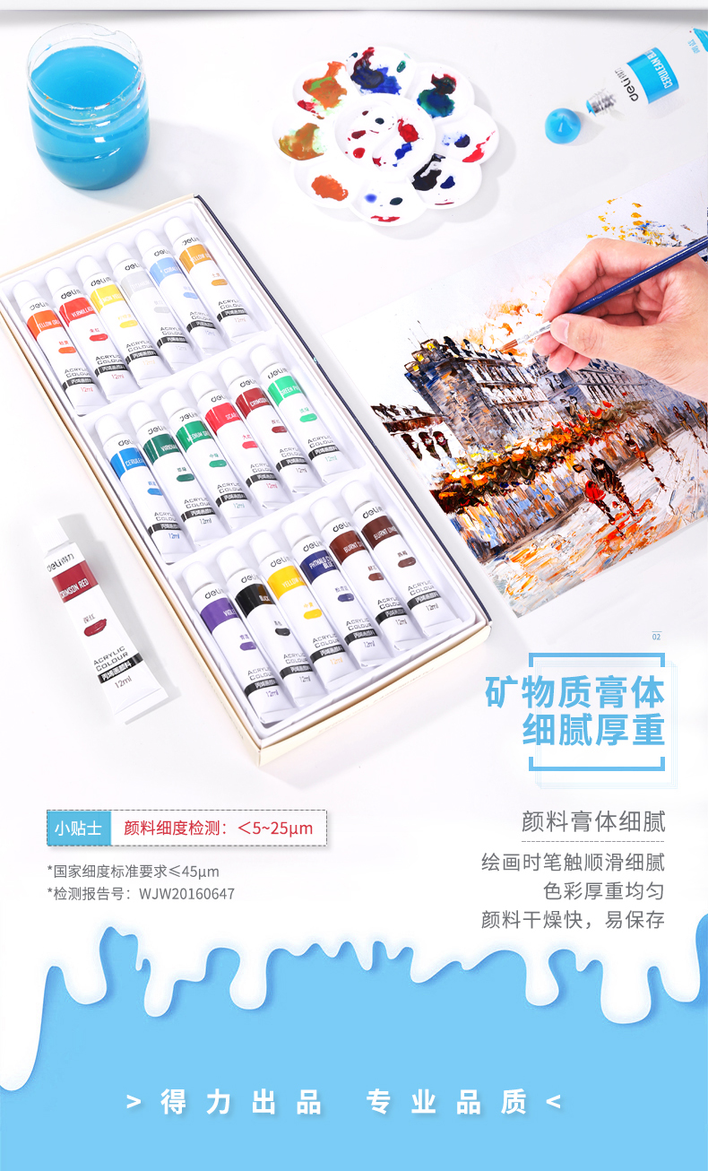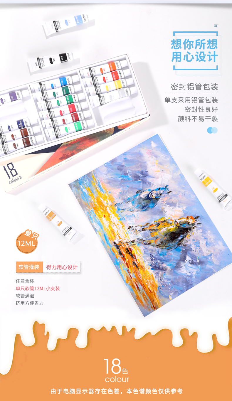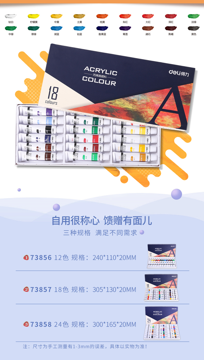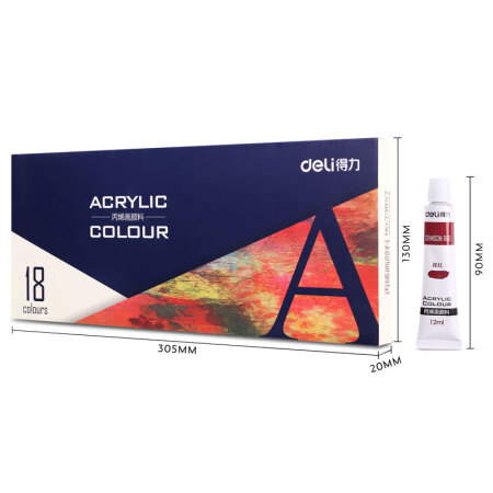 商品名称:得力(deli)73857 美术绘画18色丙烯颜料 盒装