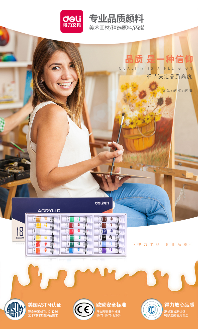 得力(deli)73857 美术绘画18色丙烯颜料 盒装
