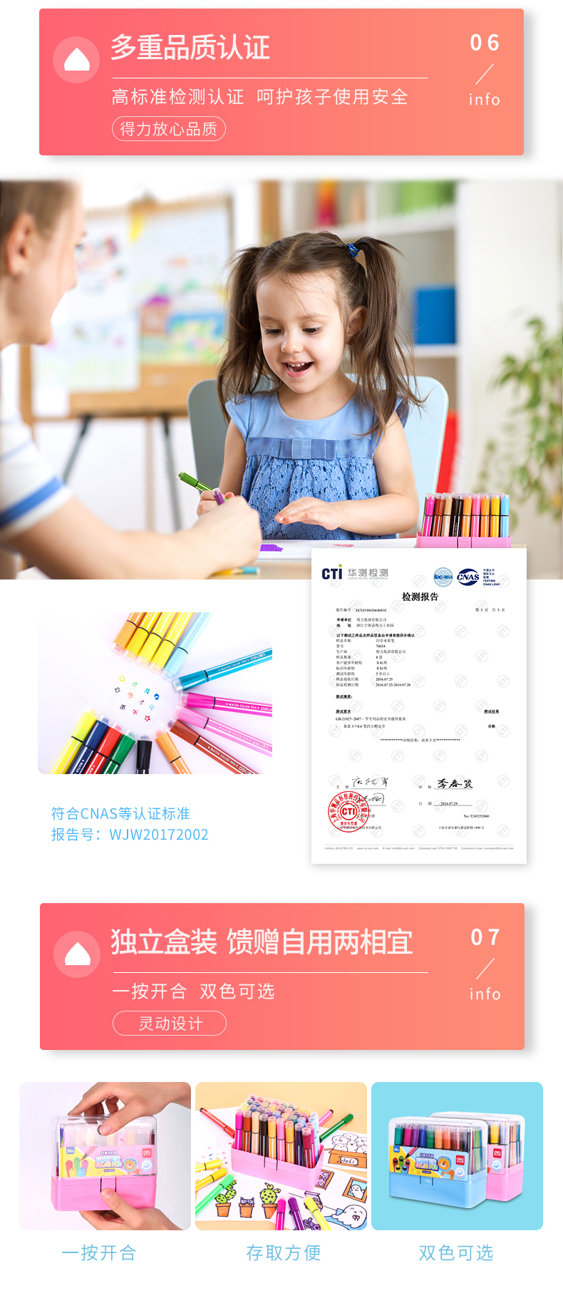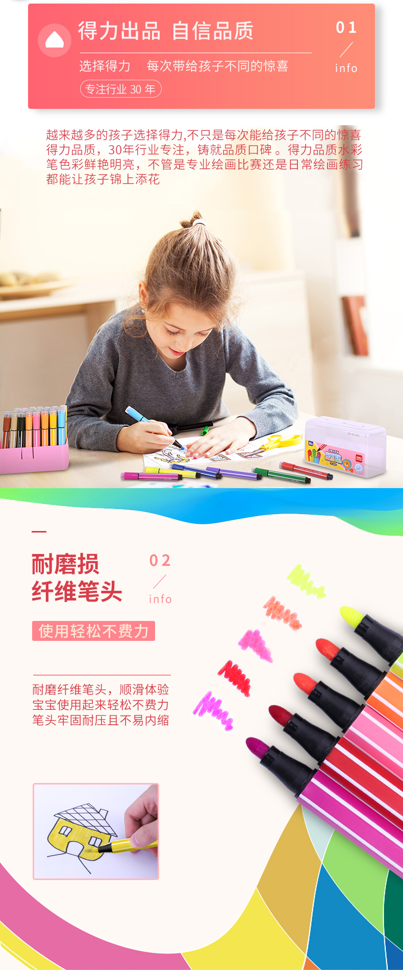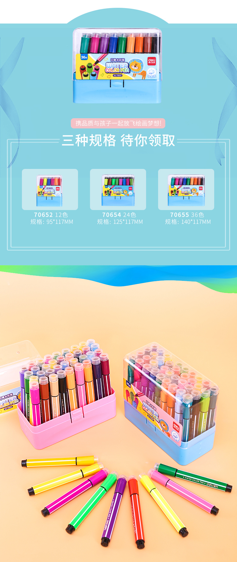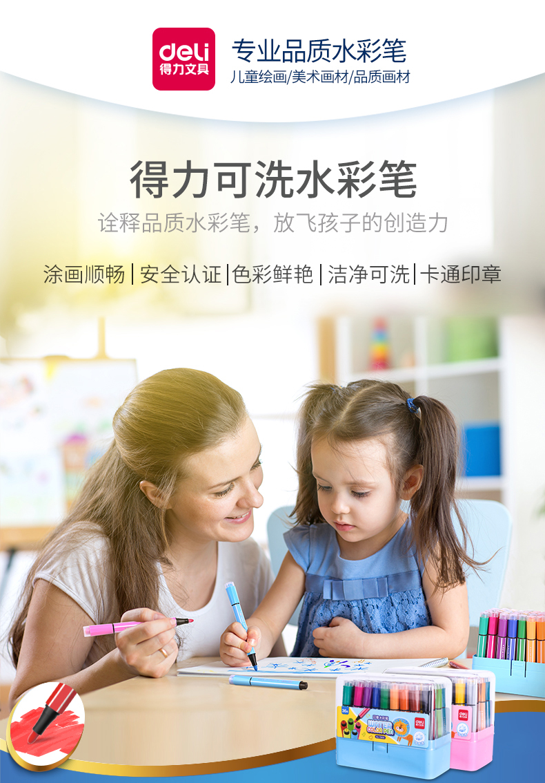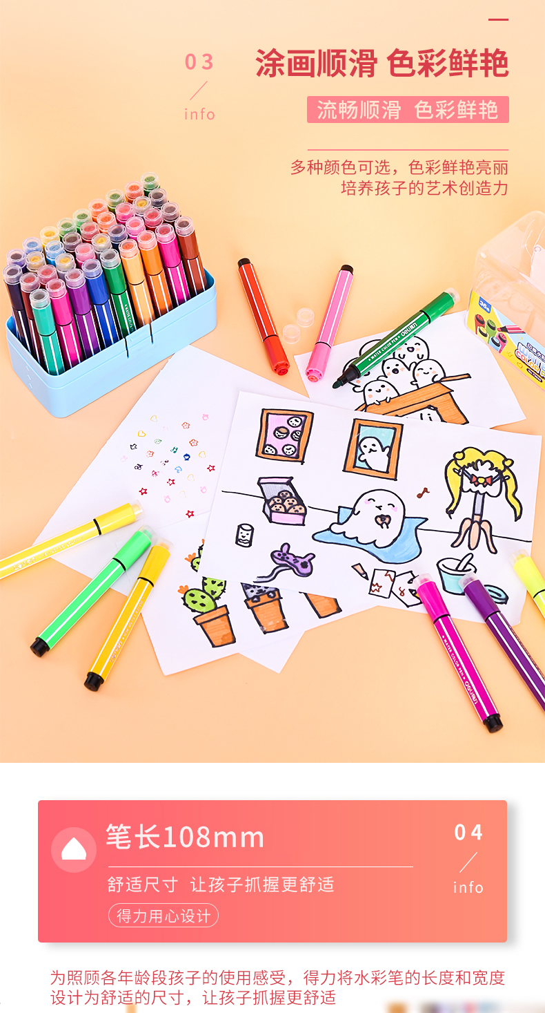 得力(deli)70655 大容量印章可洗水彩笔 36色