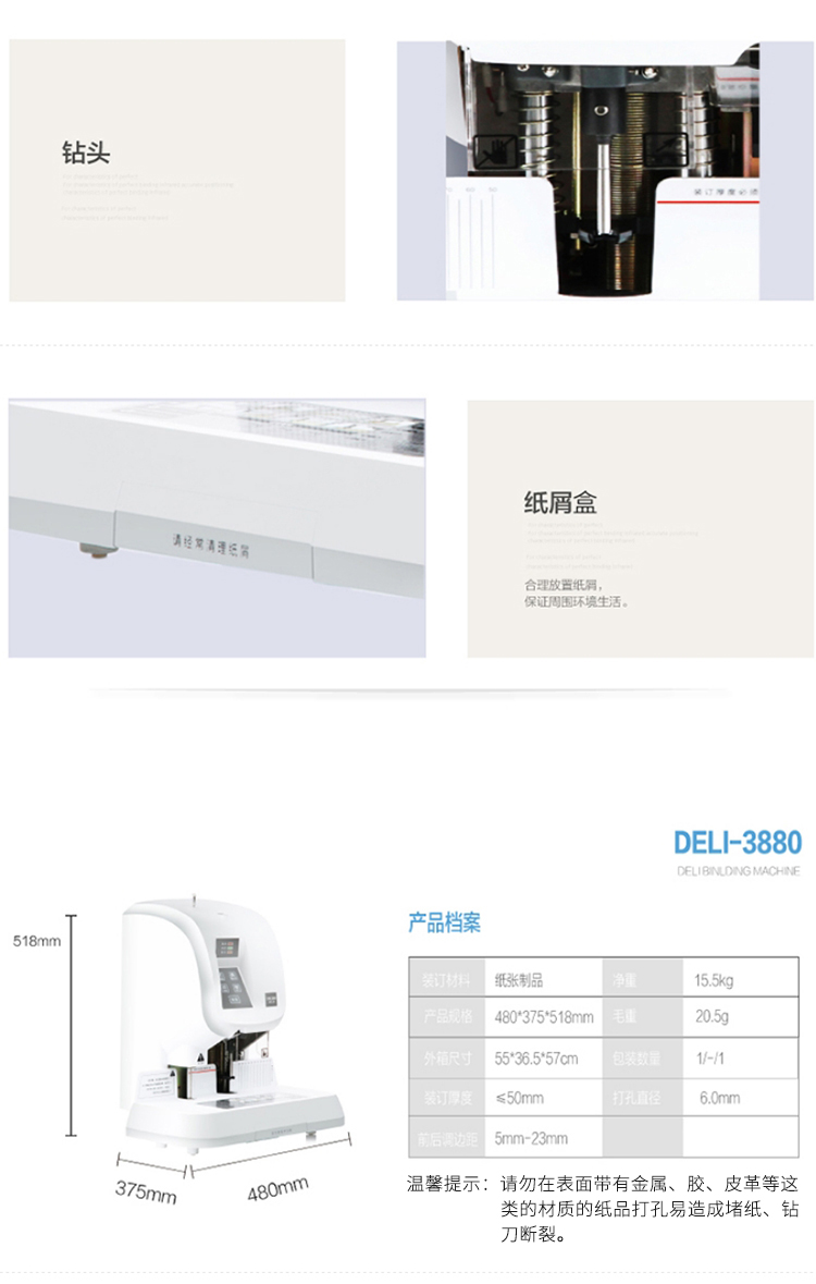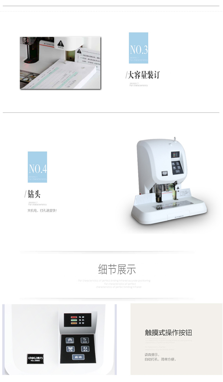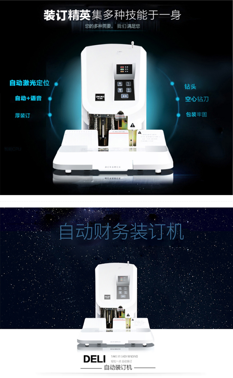 商品名称:得力(deli)3880 自动财务凭证装订机 激光定位电动档案打孔机