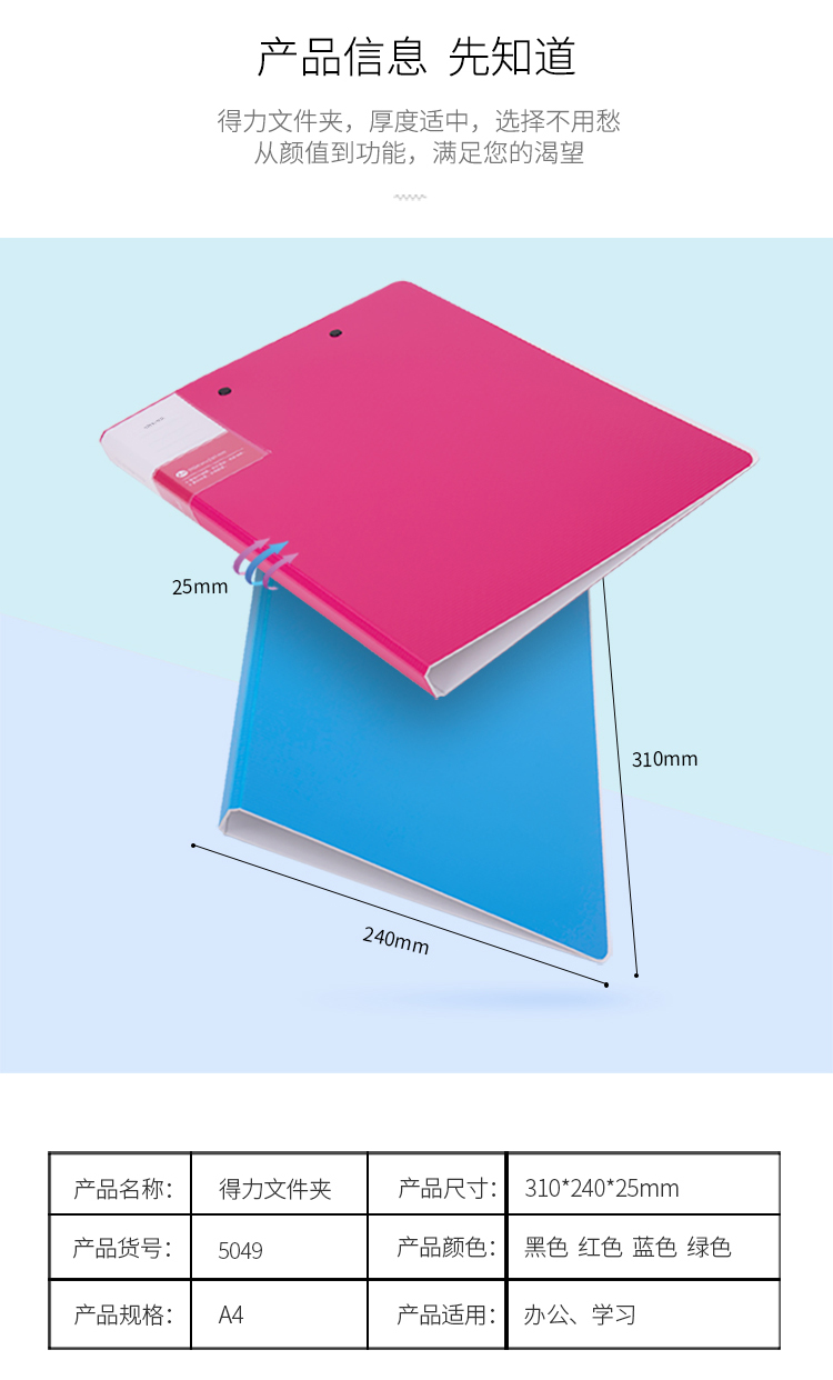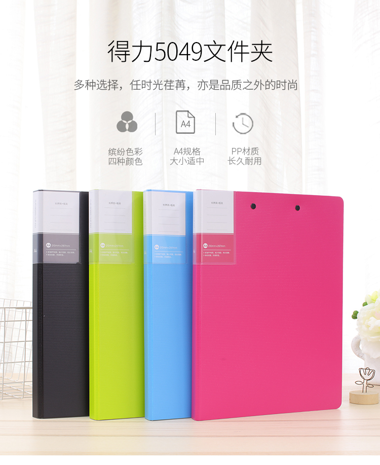 商品名称:得力5049 文件夹(长押夹+板夹) A4 湖蓝色