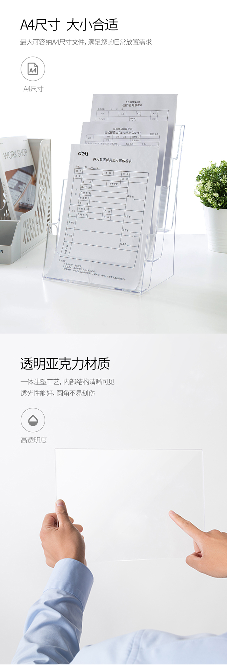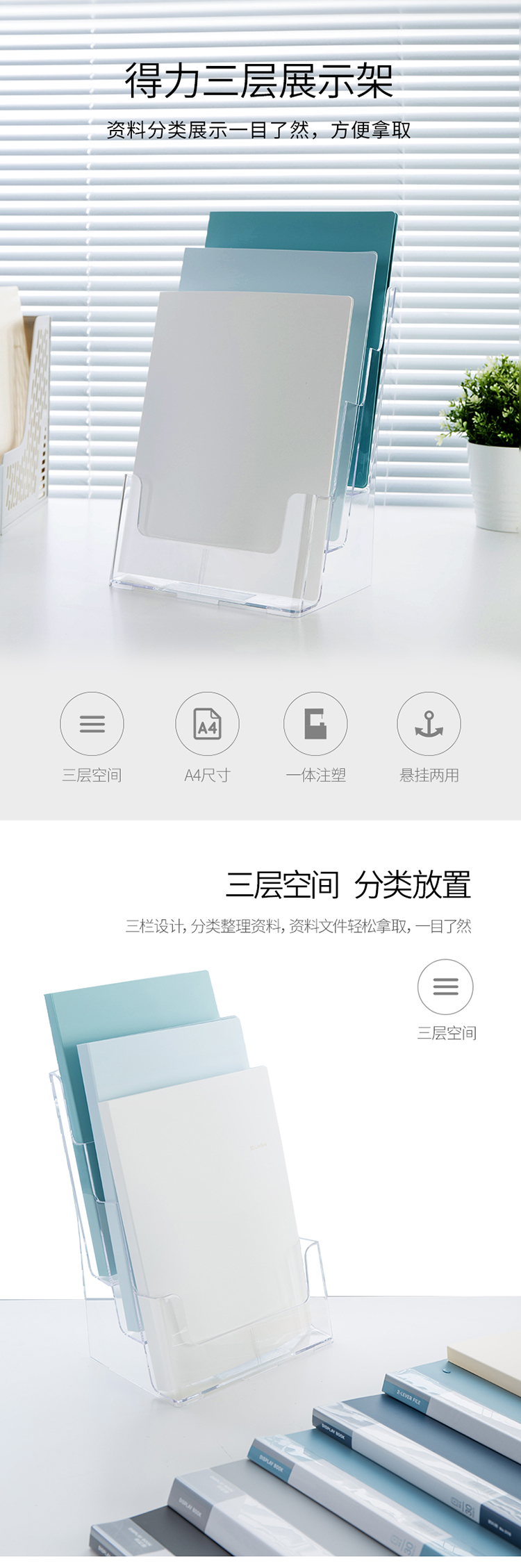 得力(deli)三层A4 亚克力桌面资料展示架 挂墙宣传单杂志架 9318