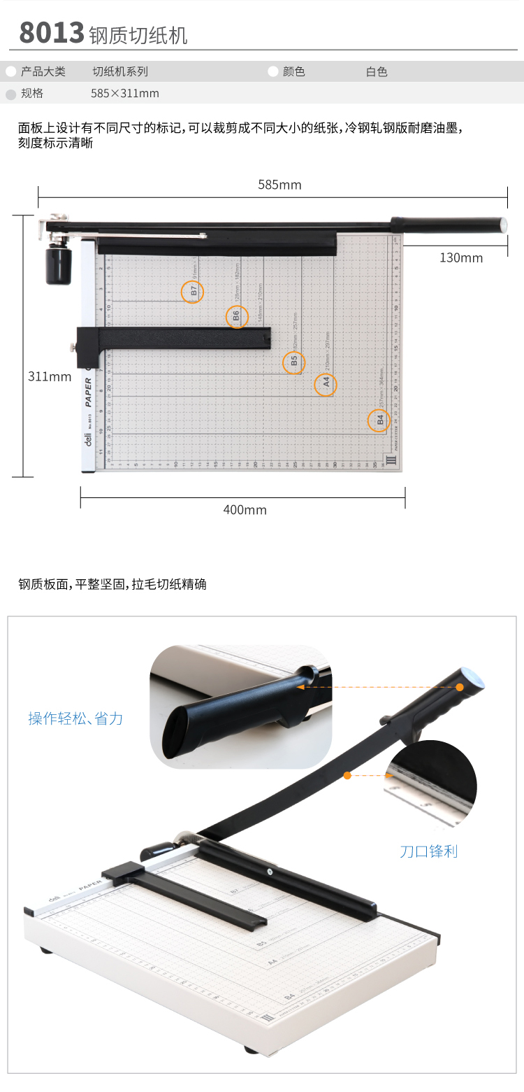 商品名称:得力(deli) 8013 钢质切纸机/切纸刀/裁纸刀/裁纸机 380mm*300mm