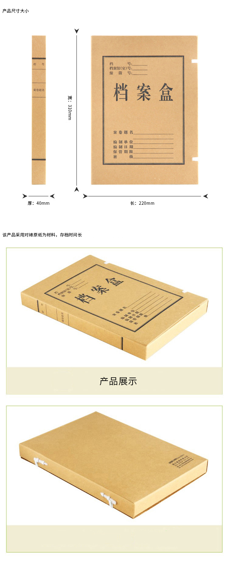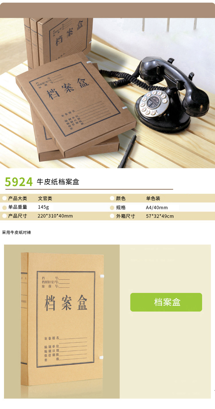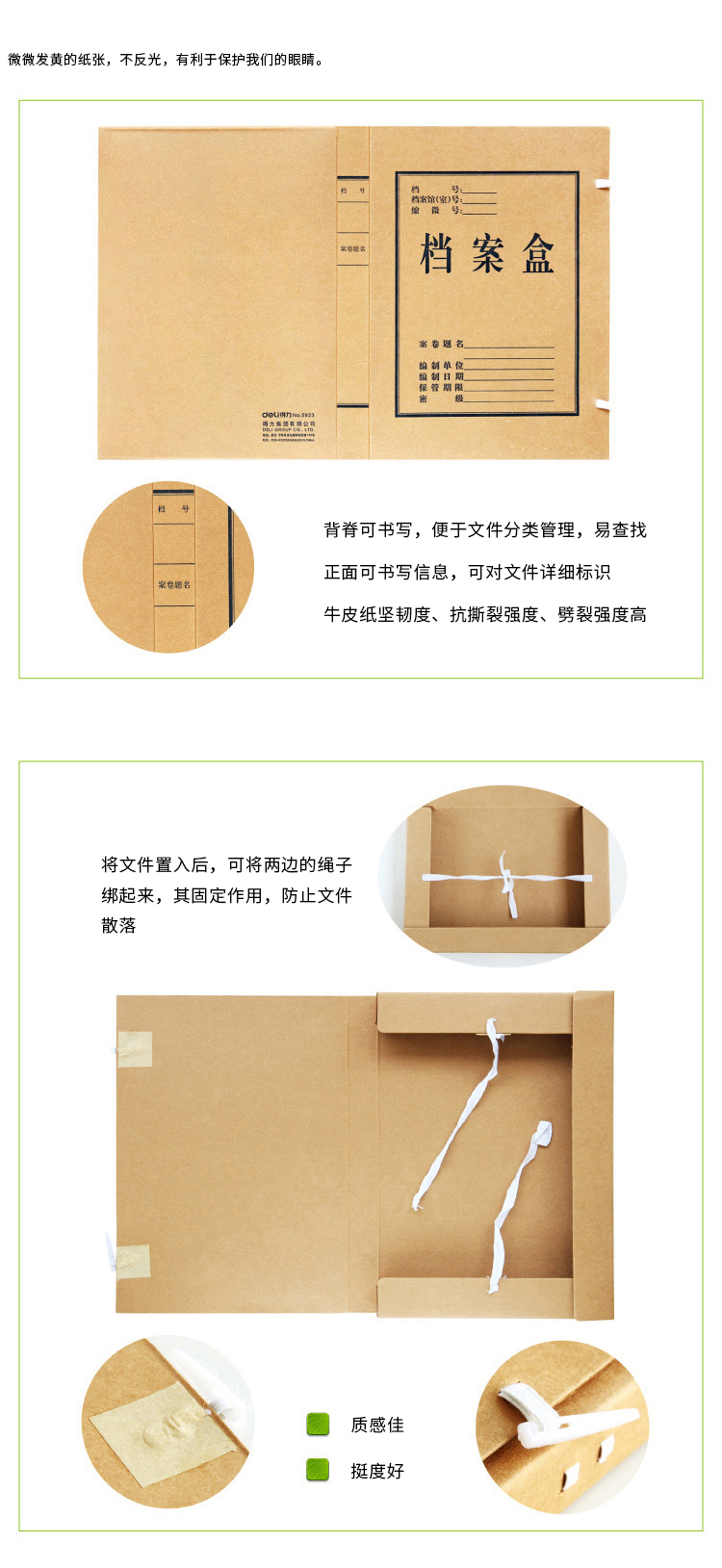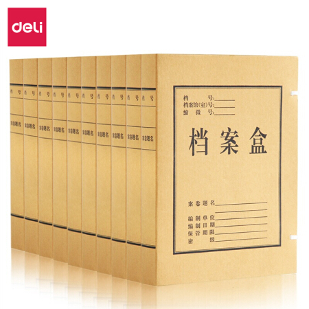 商品名称:得力 5924 牛皮纸档案盒 A4背宽4cm 10个/盒