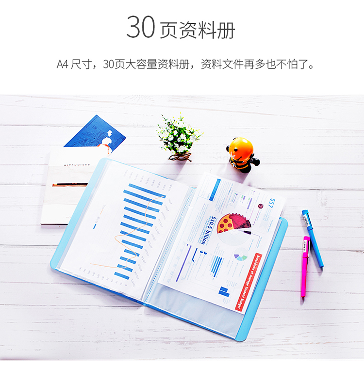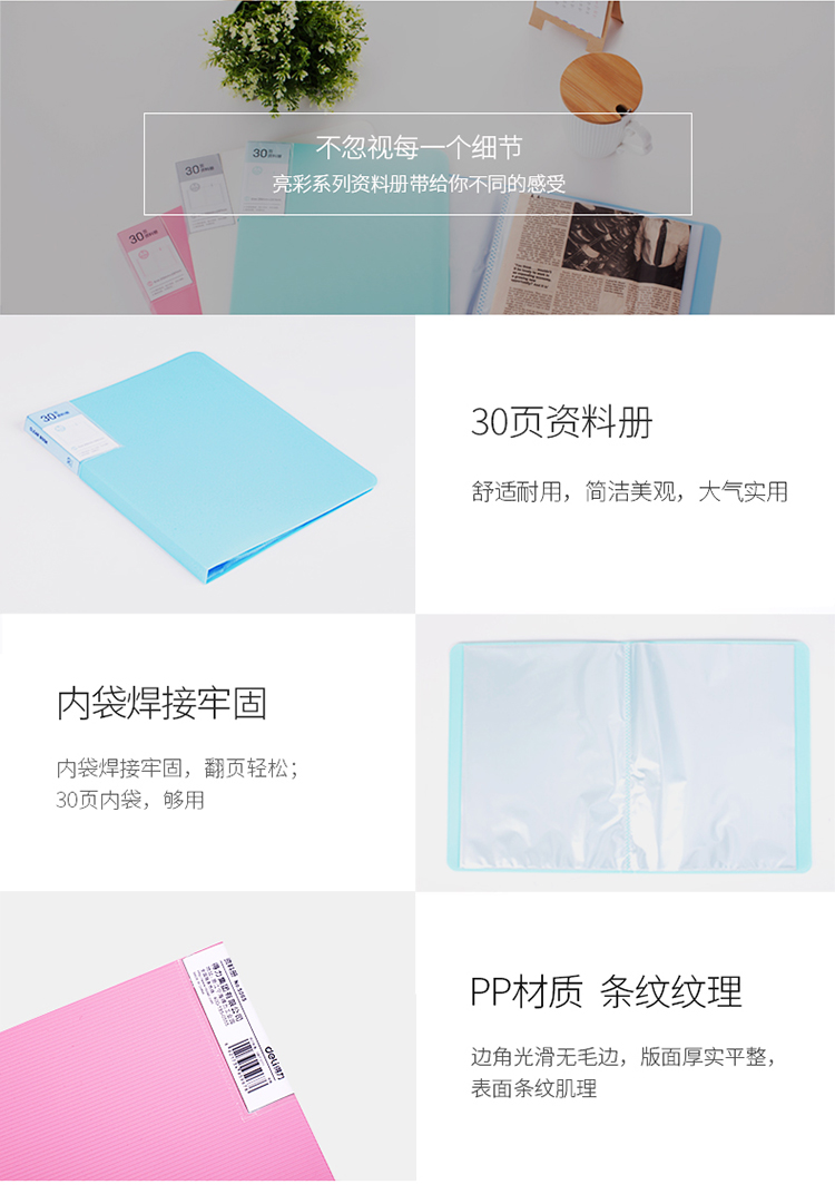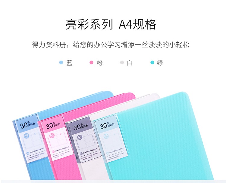 商品名称:得力(deli)5065 A4 30页 时尚亮彩资料册/资料袋/资料夹 蓝