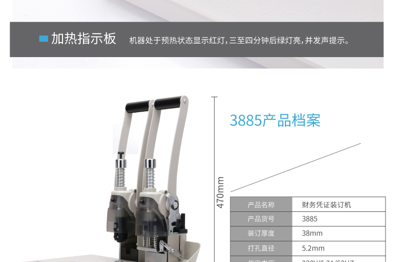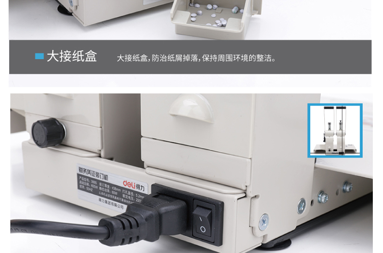商品名称:得力3885 财务凭证装订机 (灰色)