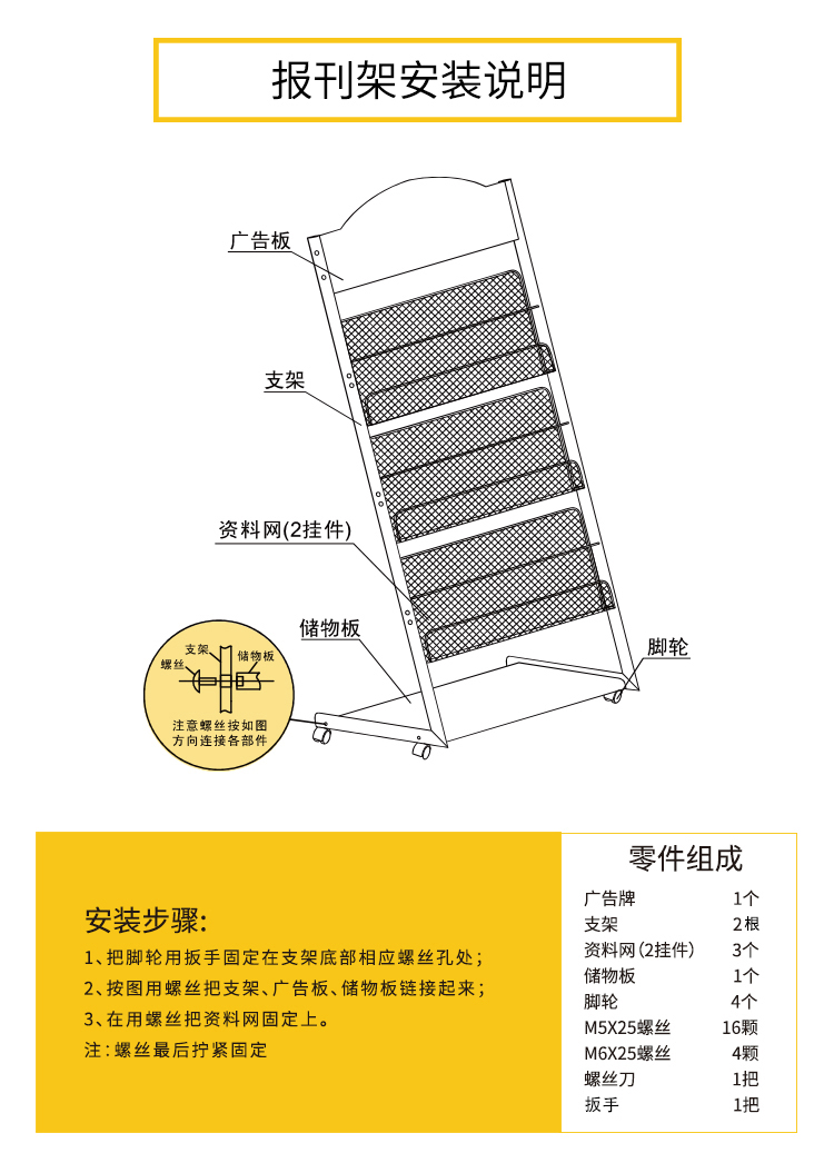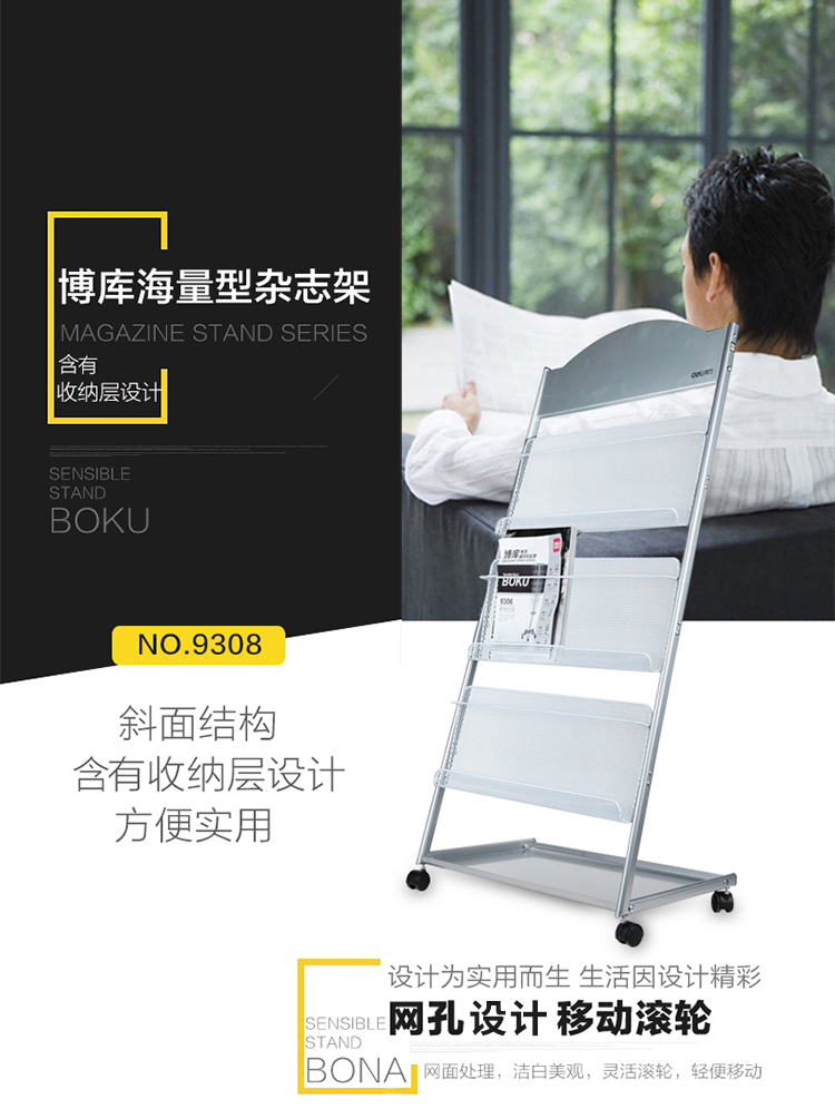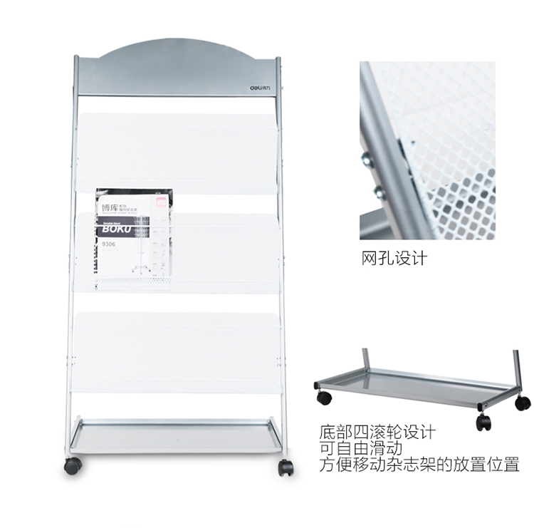 商品名称:得力(deli)三层金属报刊杂志架书刊架 宣传册展示架635*360*1275mm 9308