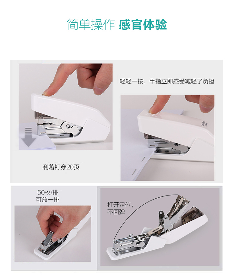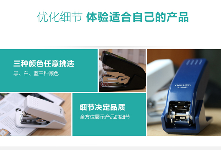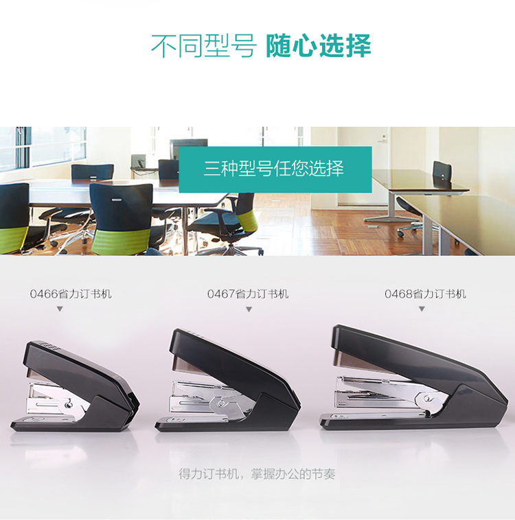 商品名称:得力(deli)0466 小型省力型订书机/装订器 单指轻松装订 搭配12#钉 可装50枚钉书针 黑色