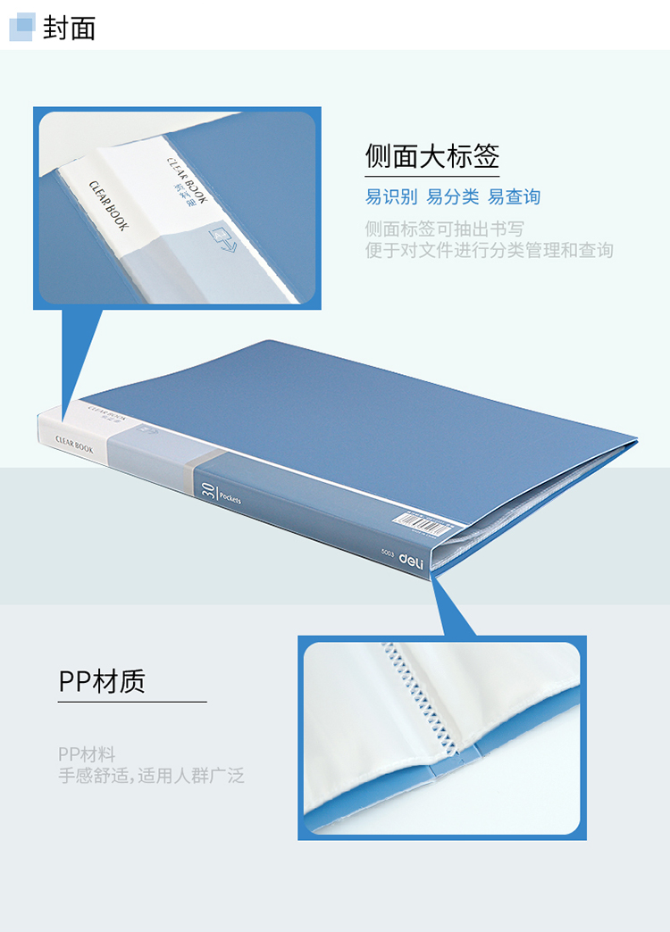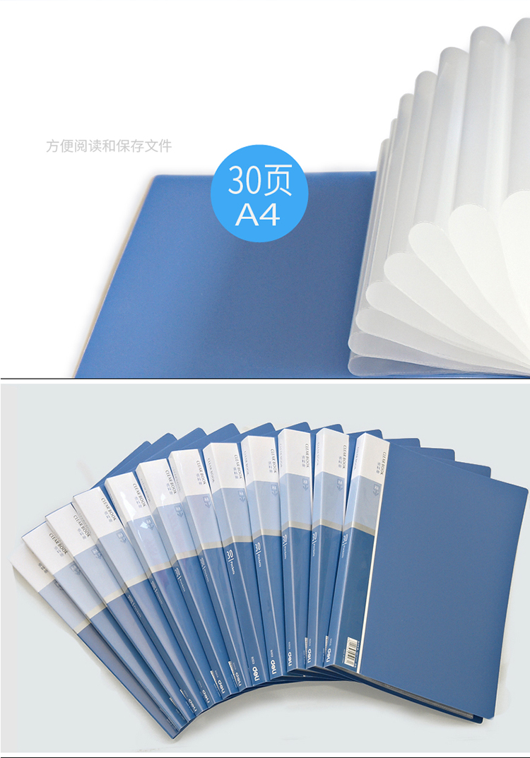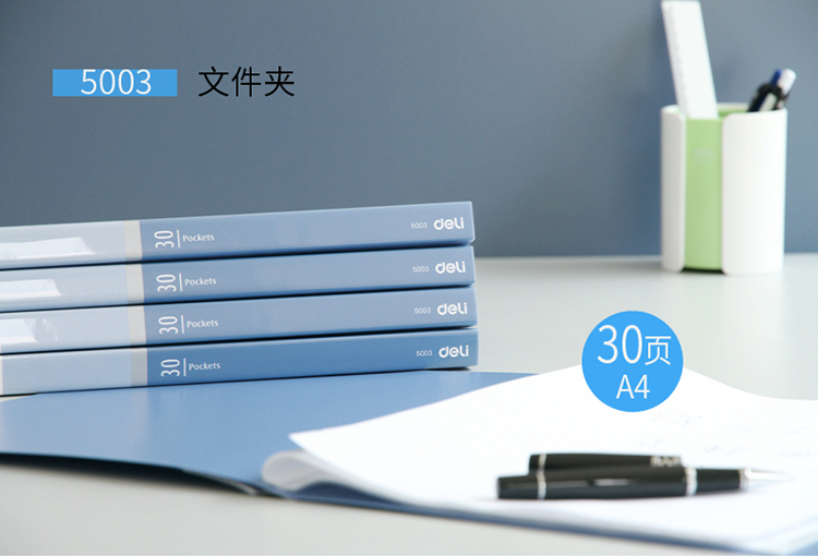 商品名称:得力(deli) 5003 经济型A4/30页资料册 蓝色 12只装