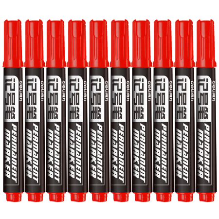 得力(deli)6881红色粗头物流油性记号笔大头笔 10支/盒