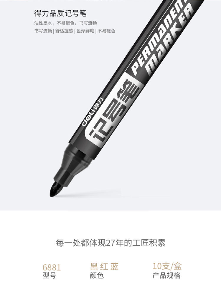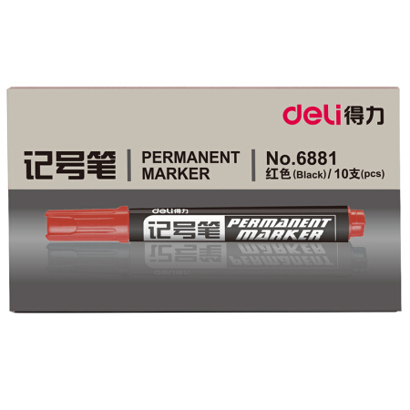 商品名称:得力(deli)6881红色粗头物流油性记号笔大头笔 10支/盒