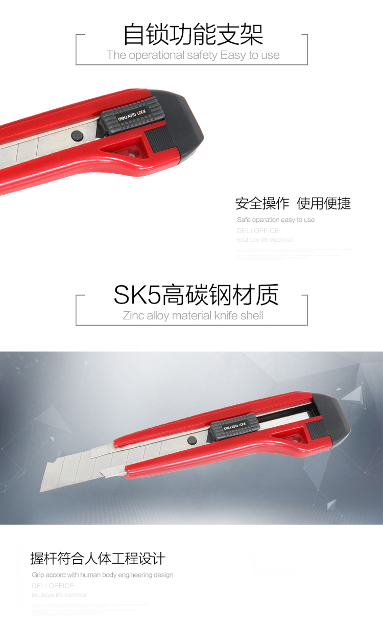 商品名称:得力大号带金属护套美工刀2041