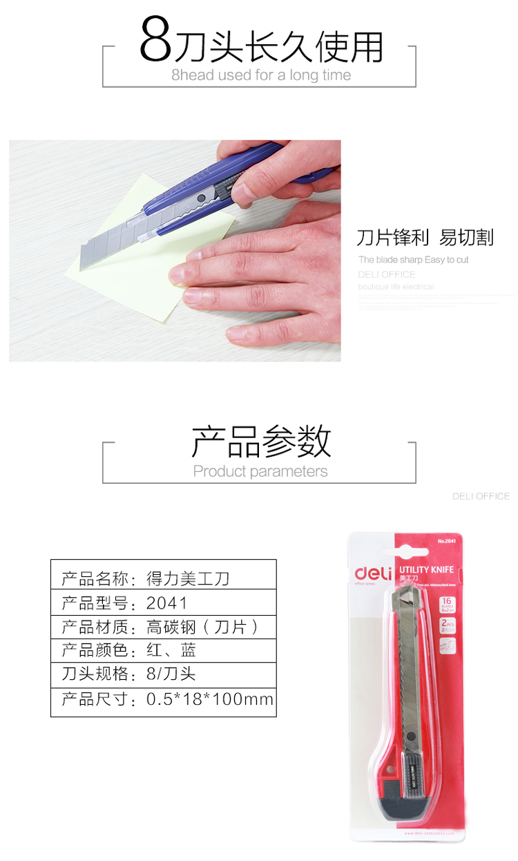 商品名称:得力(deli)2041 大号带金属护套美工刀 颜色随机