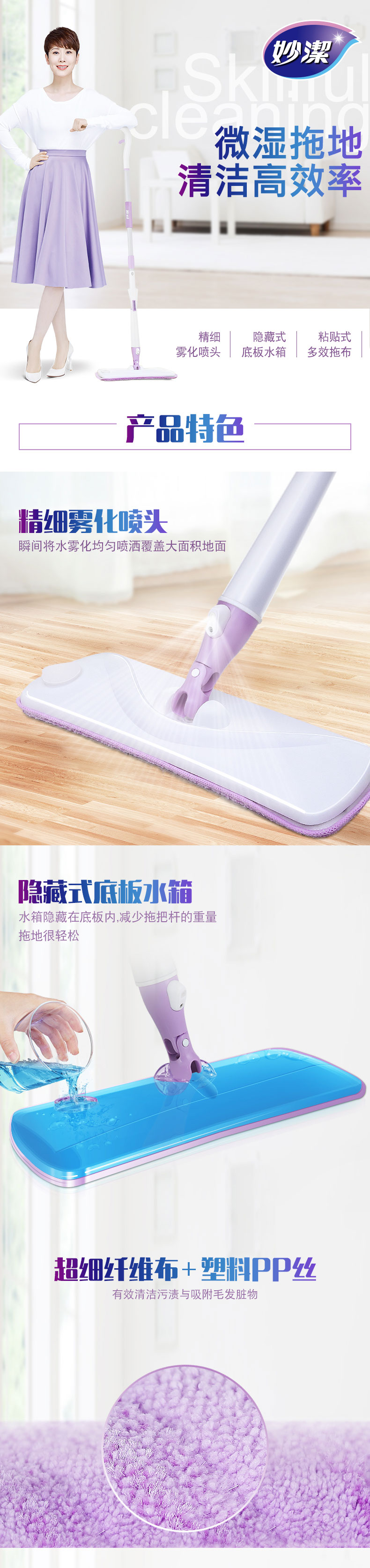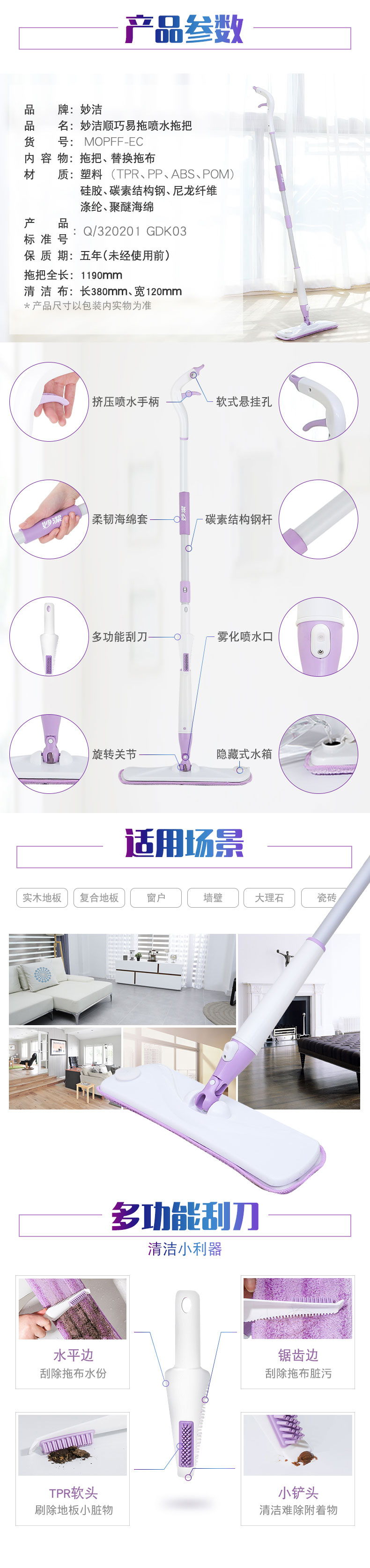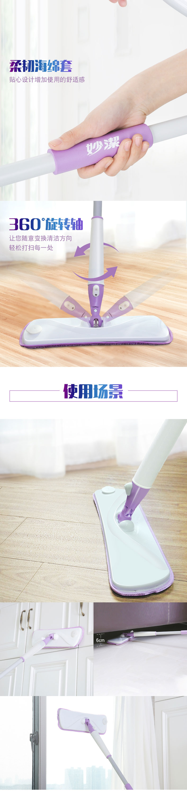商品名称:妙洁 喷水式平板拖把 360°无死角