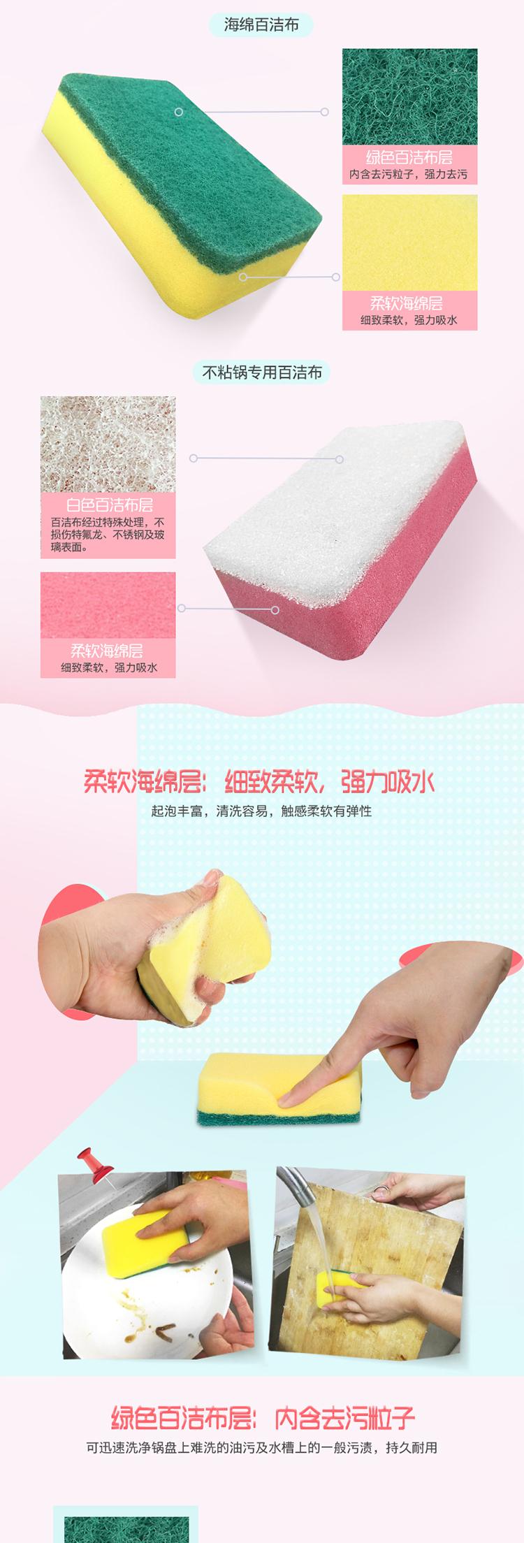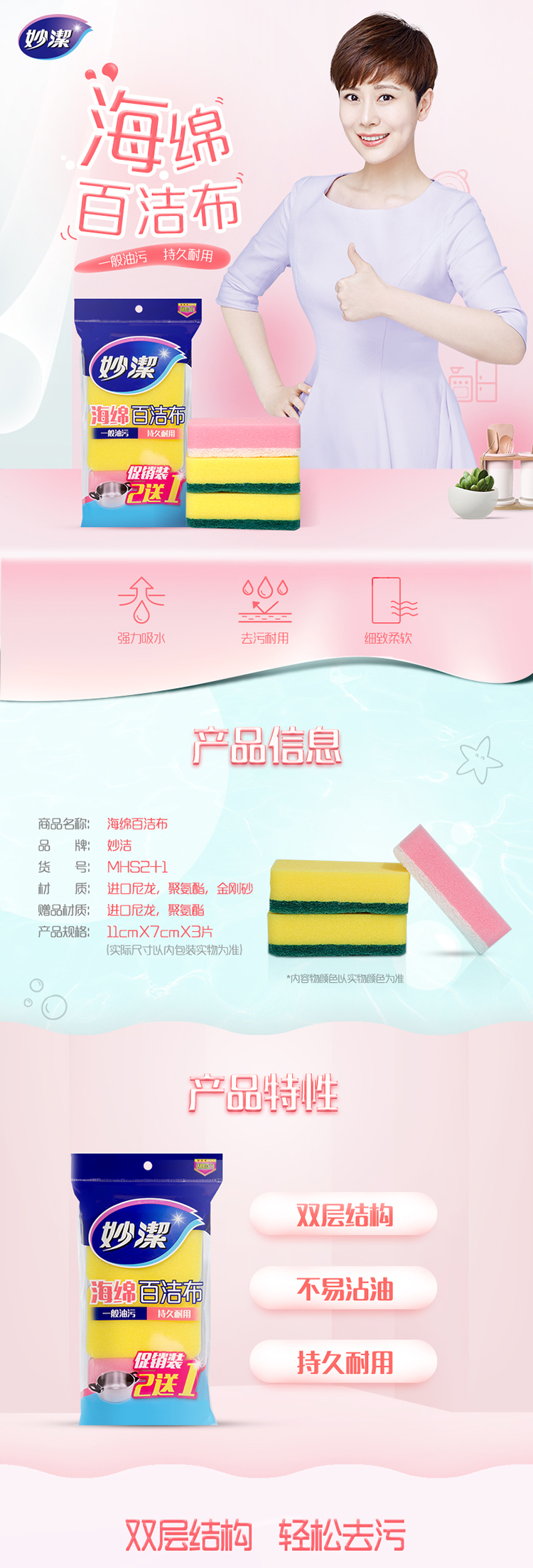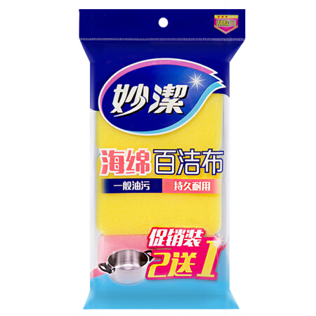 商品名称:妙洁 海绵百洁布洗碗布2+1片 去油污